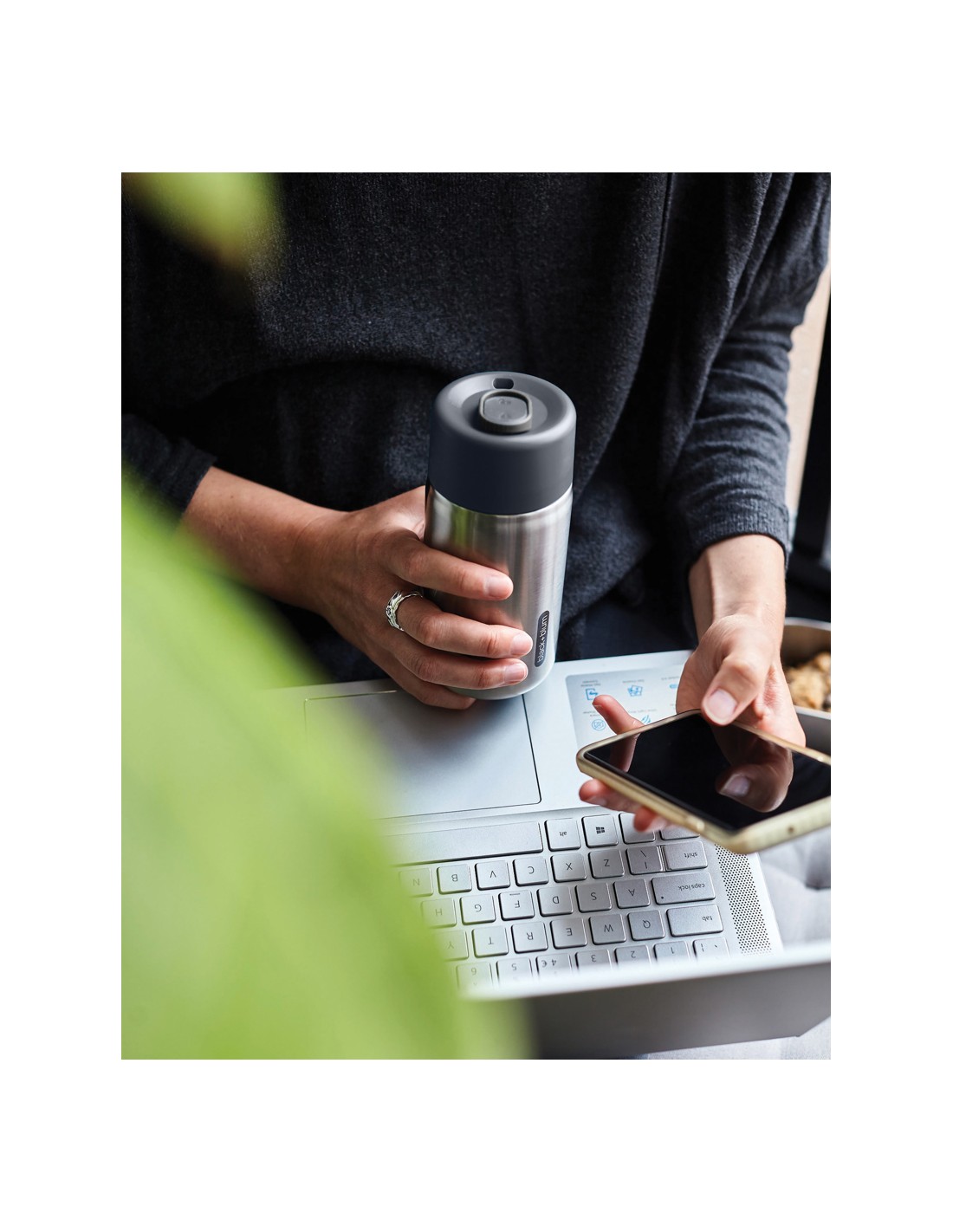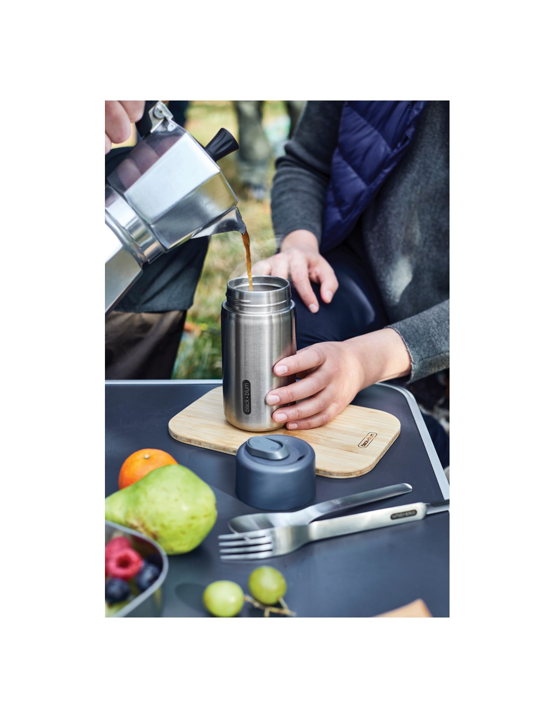 Portapranzo di alta qualità in acciaio 18/8. Il cucchiaio di legno in dotazione può essere riposto nella cinghia fissata sulla bottiglia. L'ampia apertura lo rende facile da riempire, pulire e ci potrai mangiare direttamente senza difficoltà.