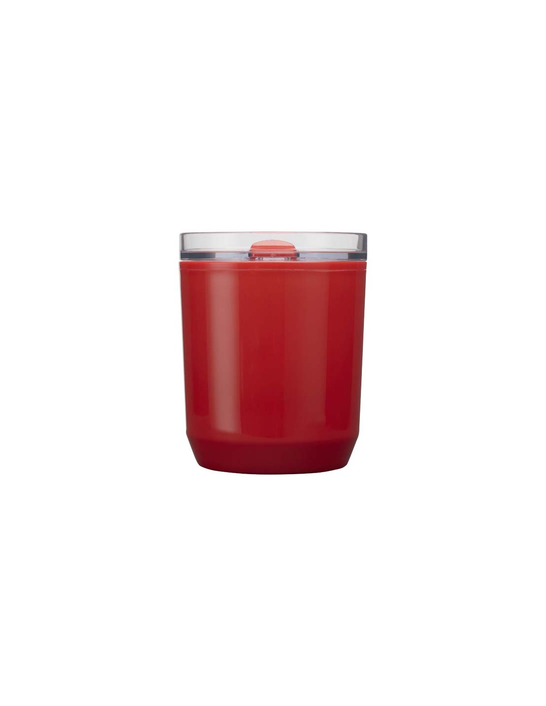 Bicchiere dal design semplice compatibile con la maggior parte delle macchine da caffè e dei portabicchieri per auto. Presenta una struttura a doppia parete con esterno in plastica PP riciclata e interno in plastica PP. Il coperchio scorrevole è realizzato in plastica PP e AS. Capacità: 180 ml.
