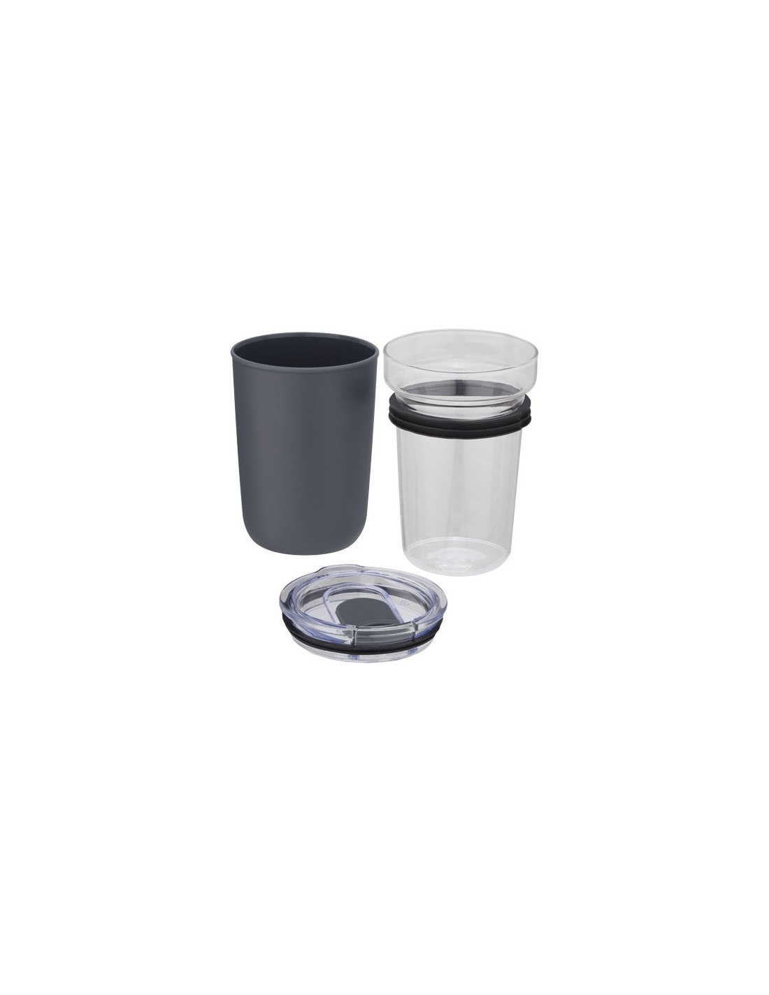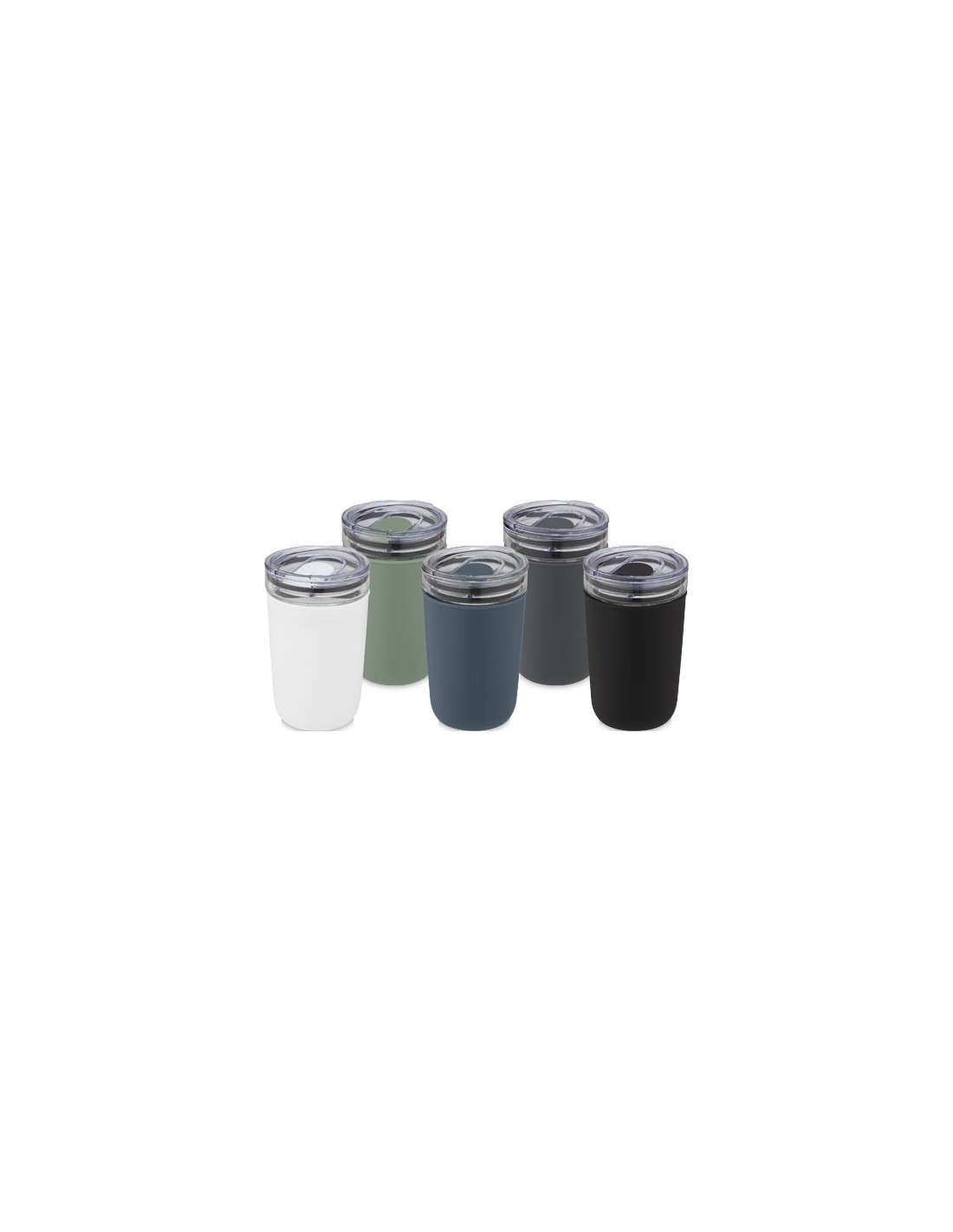 Bicchiere in vetro con custodia protettiva in plastica riciclata. Il bicchiere è realizzato in resistente vetro borosilicato al 100%, che mantiene la freschezza delle bevande e non contiene sostanze chimiche nocive. Priva di BPA, testata e approvata ai sensi della normativa tedesca in materia di sicurezza alimentare (LFGB). Testata e approvata per il contenuto di ftalati secondo il regolamento REACH. Il bicchiere è adatto per la maggior parte delle macchine per il caffè. Capacità di 420 ml. Questo articolo è lavabile in lavastoviglie, basta rimuovere la custodia in plastica. Fornita in una confezione regalo in cartone riciclato.