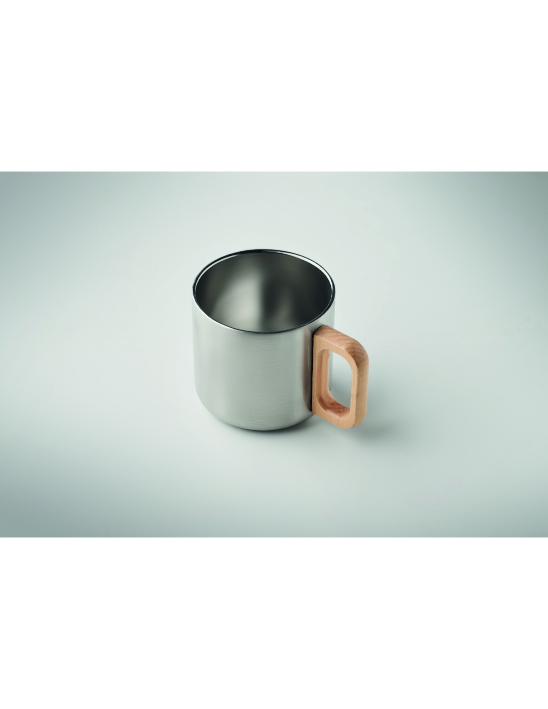 Tazza in acciaio inossidabile a doppio strato con manico in PP. Capacità: 300 ml.