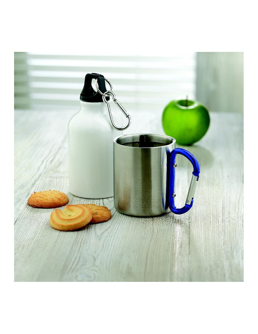 Tazza con moschettone, doppio strato in acciaio inossidabile. 220 ml.
