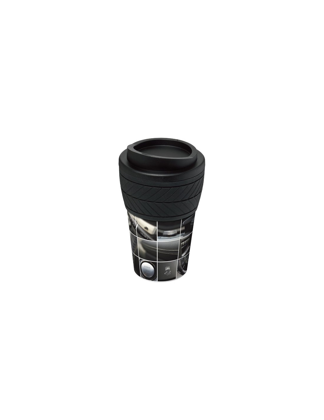 Bicchiere termico a doppia parete con coperchio a vite e impugnatura in silicone con design di pneumatico. Lo strato esterno del tumbler è realizzato in plastica riciclata. Bicchiere con design avvolgente a colori stampato sul prodotto, che lo rende resistente e di lunga durata. A norma EN12875-1, lavabile in lavastoviglie e adatto al microonde. Capacità di 350 ml. Combinate i colori per creare la vostra tazza perfetta. Per informazioni sui colori disponibili, contattate il servizio clienti. Prodotto nel Regno Unito. Confezionato in un sacchetto compostabile. Senza BPA.