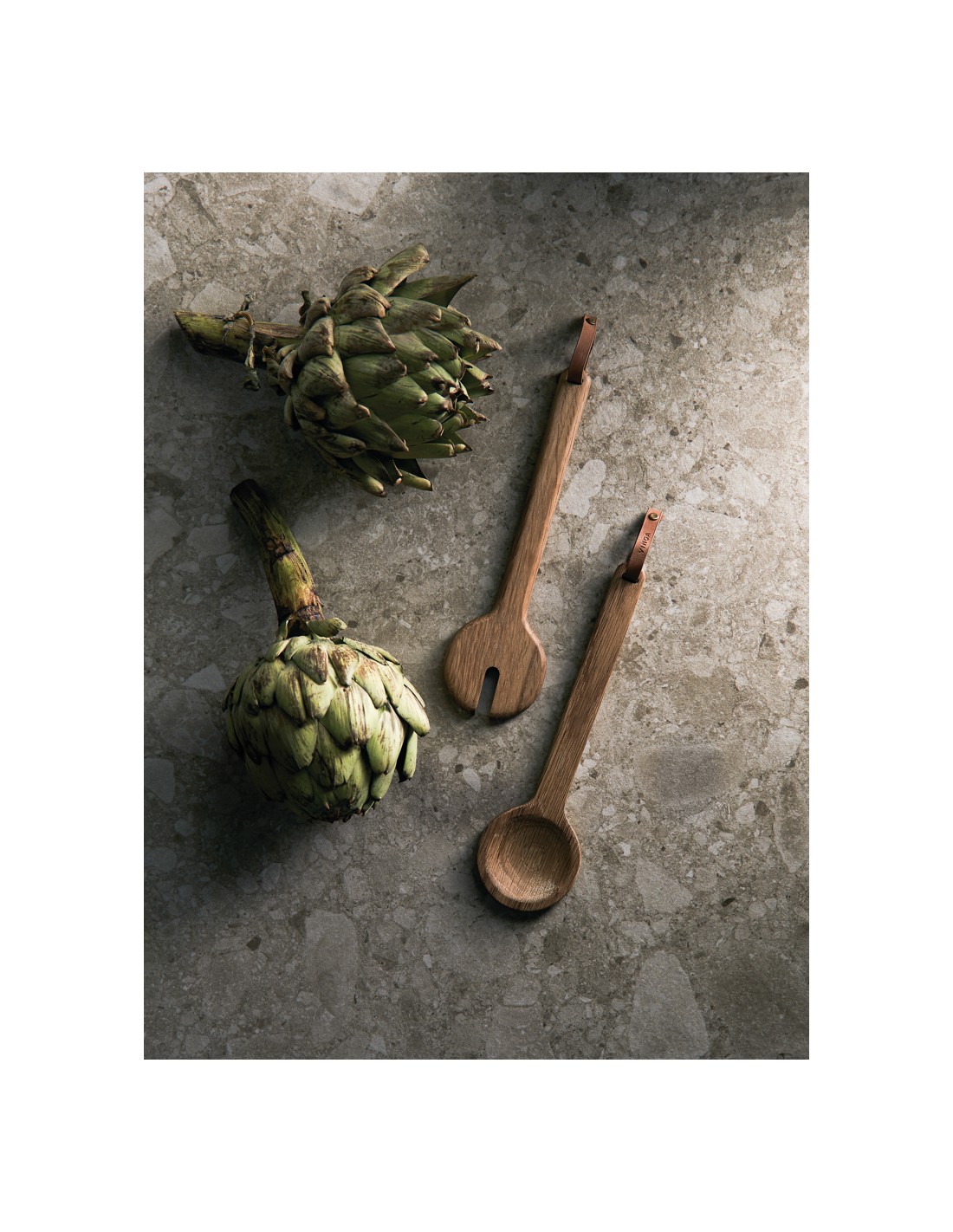 Esclusivi utensili da portata in rovere con un raffinato dettaglio in PU. Il legno di qualità dona un tocco vivace e caldo al design semplice ed elegante. Ideale sia per la vita di tutti i giorni che per le feste.