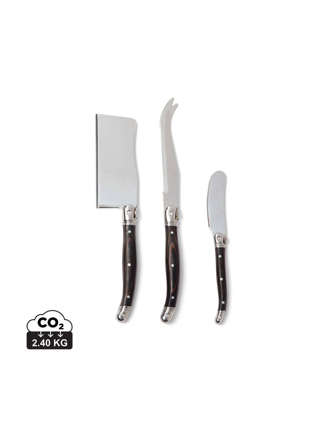Set composto da coltello e forchetta in tipico stile bistrot di ispirazione francese. Manico in legno di pakka nero e lame in acciaio inossidabile di alta qualità. Confezionato in un'esclusiva scatola regalo.