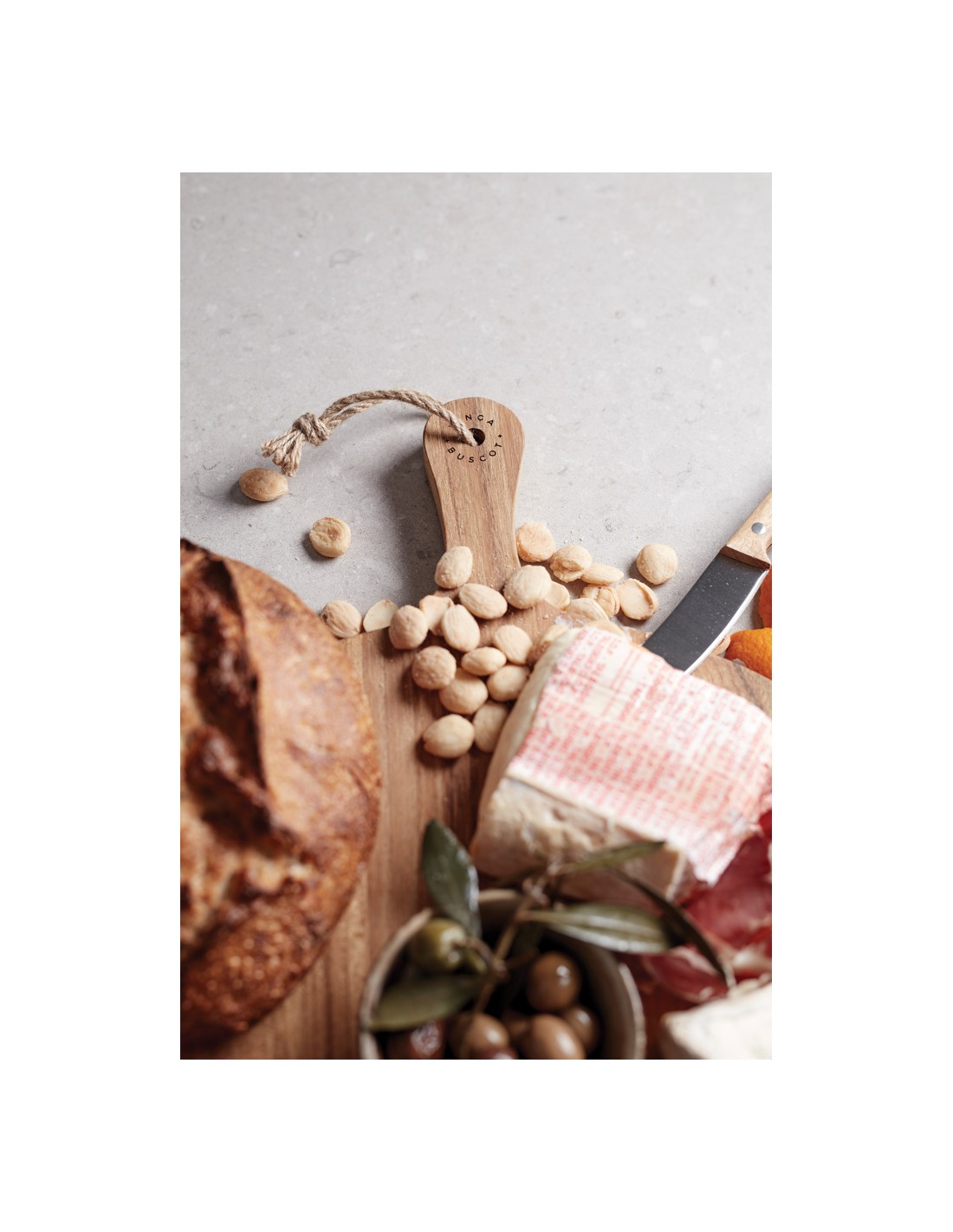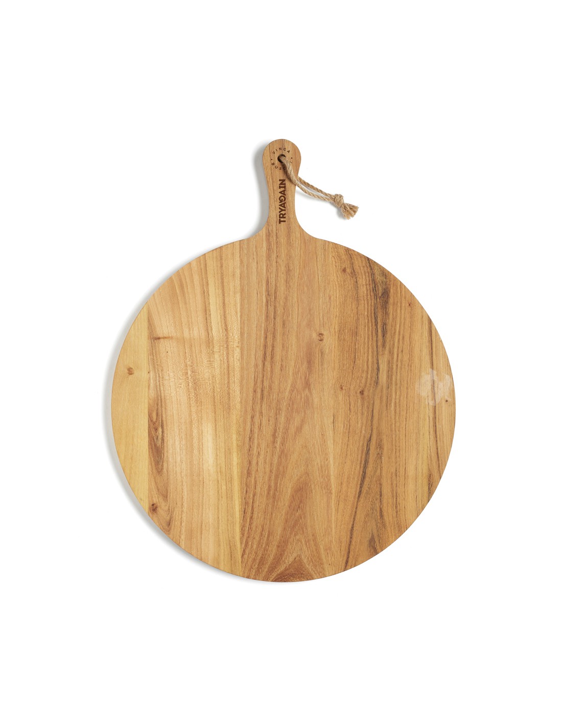 Tagliere rotondo di alta qualità che grazie alle sue grandi dimensioni e al design decorativo può essere utilizzato anche per servire. Un'utile maniglia semplifica ulteriormente il processo di manipolazione e servizio. La tavola è realizzata in teak certificato FSC® e ha una bella superficie in legno da dorato a marrone medio che si scurisce nel tempo. L'alto contenuto di olio conferisce alla tavola una potente protezione contro la putrefazione e la mantiene in ottime condizioni per lungo tempo.