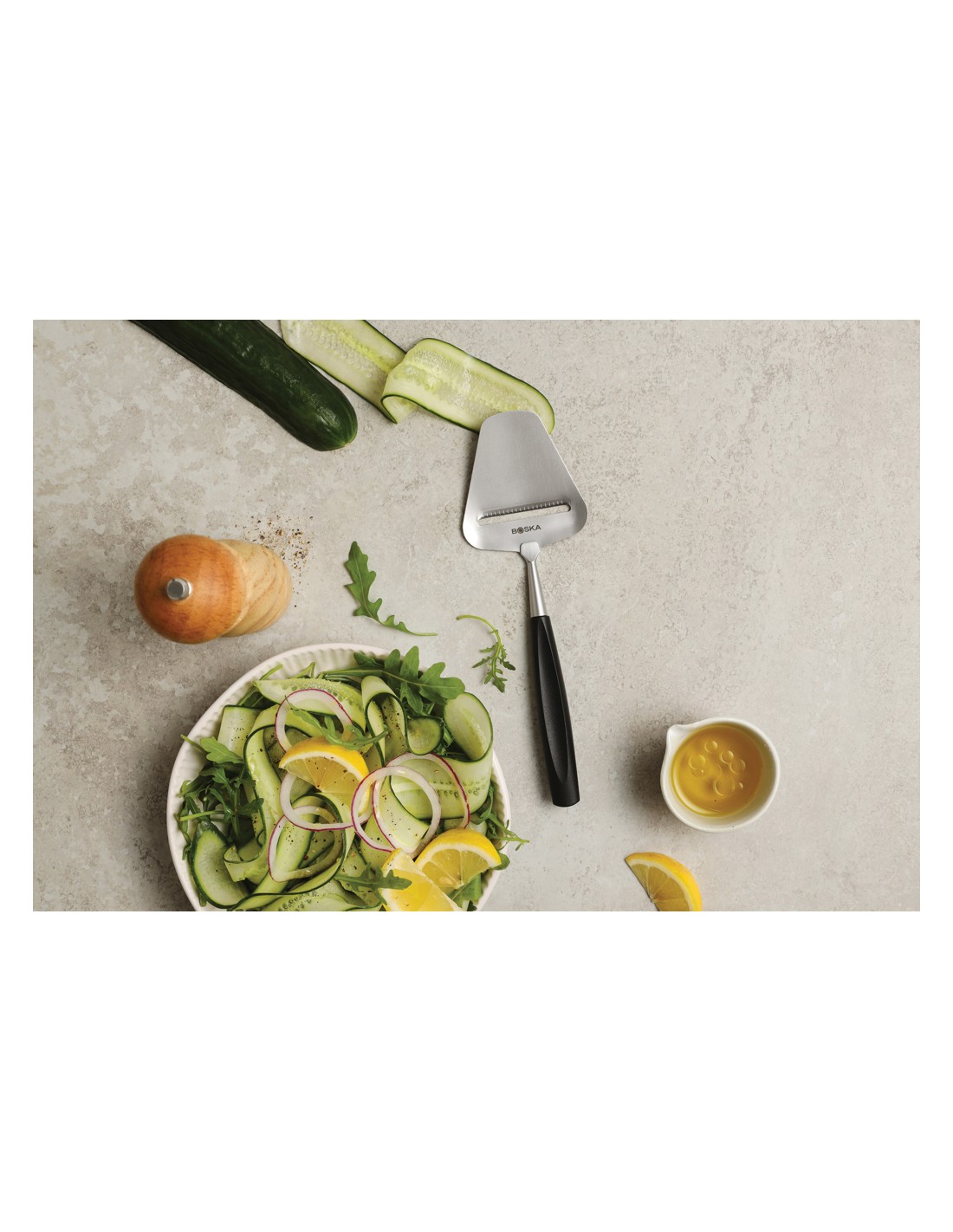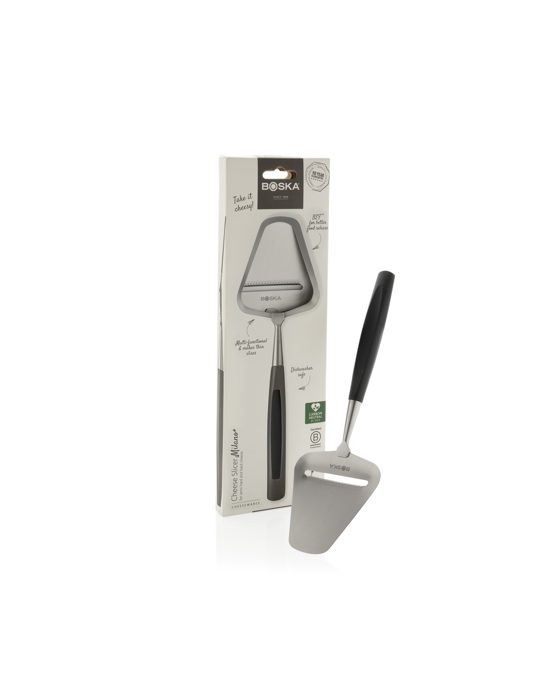 Con l'“affetta formaggio” Milano+, del marchio BOSKA - azienda certificata B Corporation - sarete voi stessi a determinare lo spessore delle scaglie di formaggio! Questa affettatrice è super antiaderente, è molto conveniente e può essere lavata in lavastoviglie e va in frigorifero. Con un solo movimento regolare, è possibile ottenere le fette più deliziose di formaggio semiduro e duro. E' adatta anche per cetrioli, asparagi e altre verdure ed è coperta da una garanzia di 10 anni.
