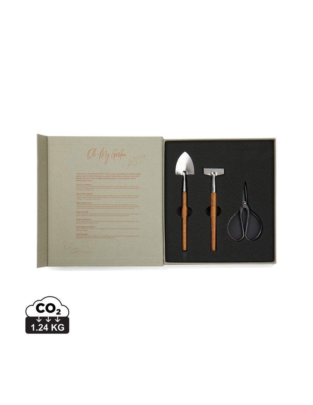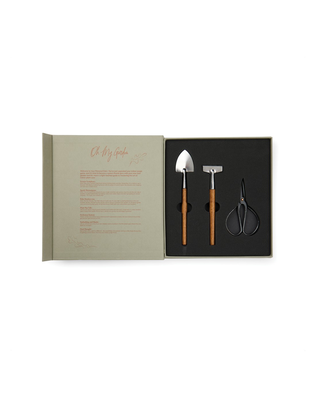 Scoprite l'incantevole mondo del giardinaggio da interno con il set Story of garden, splendidamente confezionato in una scatola regalo che ricorda un libro classico. Questo set include un rastrello e una vanga realizzati in acciaio inossidabile e legno di acacia, insieme a un paio di forbici classiche per erbe aromatiche in robusto ferro. Questi attrezzi vi aiuteranno a curare le vostre piante da interno con facilità. La confezione unica non solo protegge gli attrezzi, ma racconta anche una storia accattivante, rendendolo un regalo perfetto per gli amanti delle piante. La confezione regalo è realizzata con carta certificata FSC®.