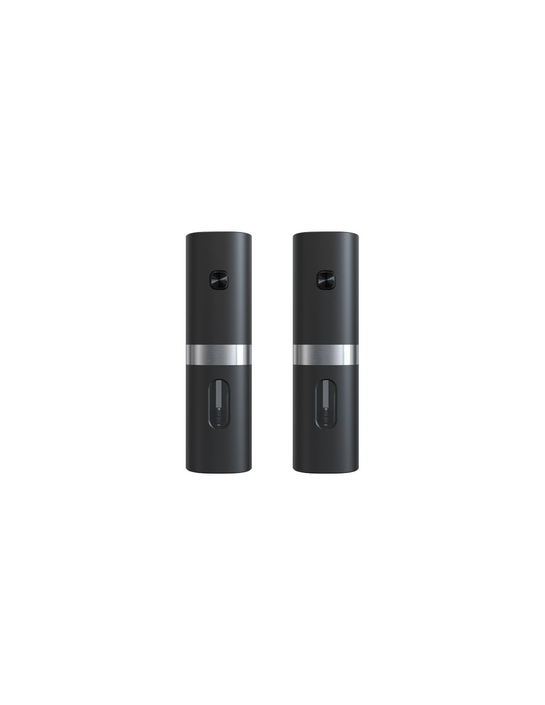 Set macina pepe e sale elettrico con luce a LED blu che si illumina all'accensione per controllare la fuoriuscita di sale/pepe. Ogni macinino (17,8 x 5,1 cm) è dotato di una batteria, ricaricabile direttamente sulla base. La base può anche essere personalizzata con un logo luminoso. Entrambi i macinini sono dotati di un serbatoio trasparente per distinguere facilmente il contenuto all'interno e possono essere utilizzati circa 200 volte con una sola ricarica. Forniti con una base di ricarica (15,5 x 8 x 2,5 cm) con finitura in gomma soft-touch. Con confezione regalo in carta kraft riciclata (17,7 x 23,4 x 8,5 cm). Garanzia di 3 anni inclusa.