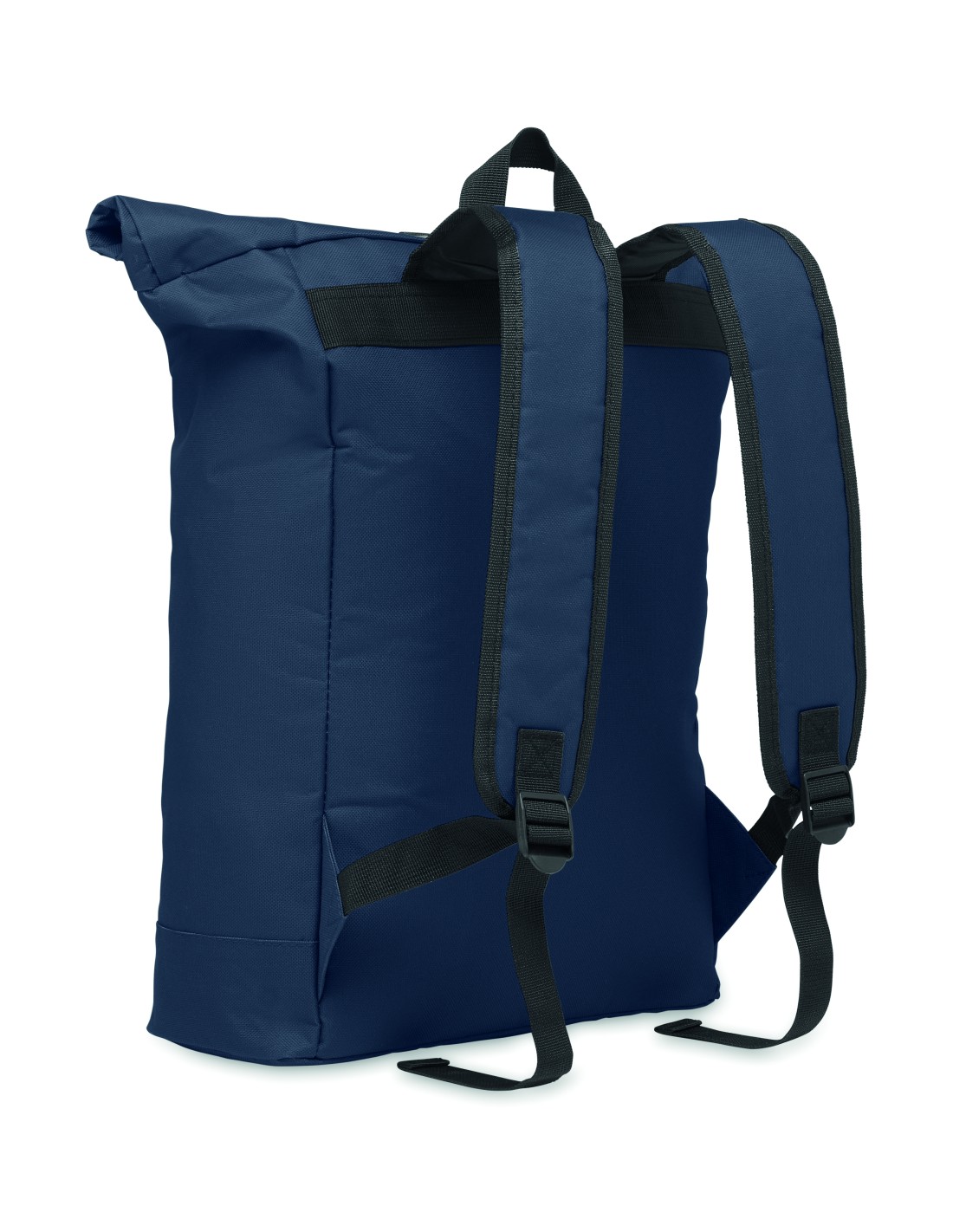 Zaino refrigerante in 300D RPET con scomparto per laptop da 15 pollici. Tasca frontale con cerniera e scomparto laterale in rete.