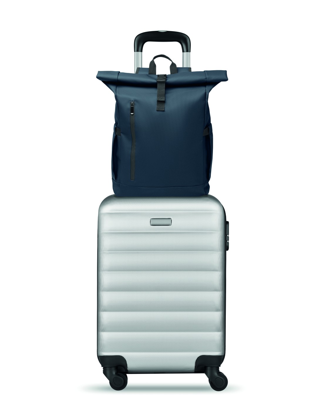 Zaino in tessuto 1680D jacquard. Tasca frontale con cerniera e organizer all’interno. Scomparto principale portacomputer da 15,4” con tasca imbottita. Profili riflettenti. Tasche in rete. Senza PVC.