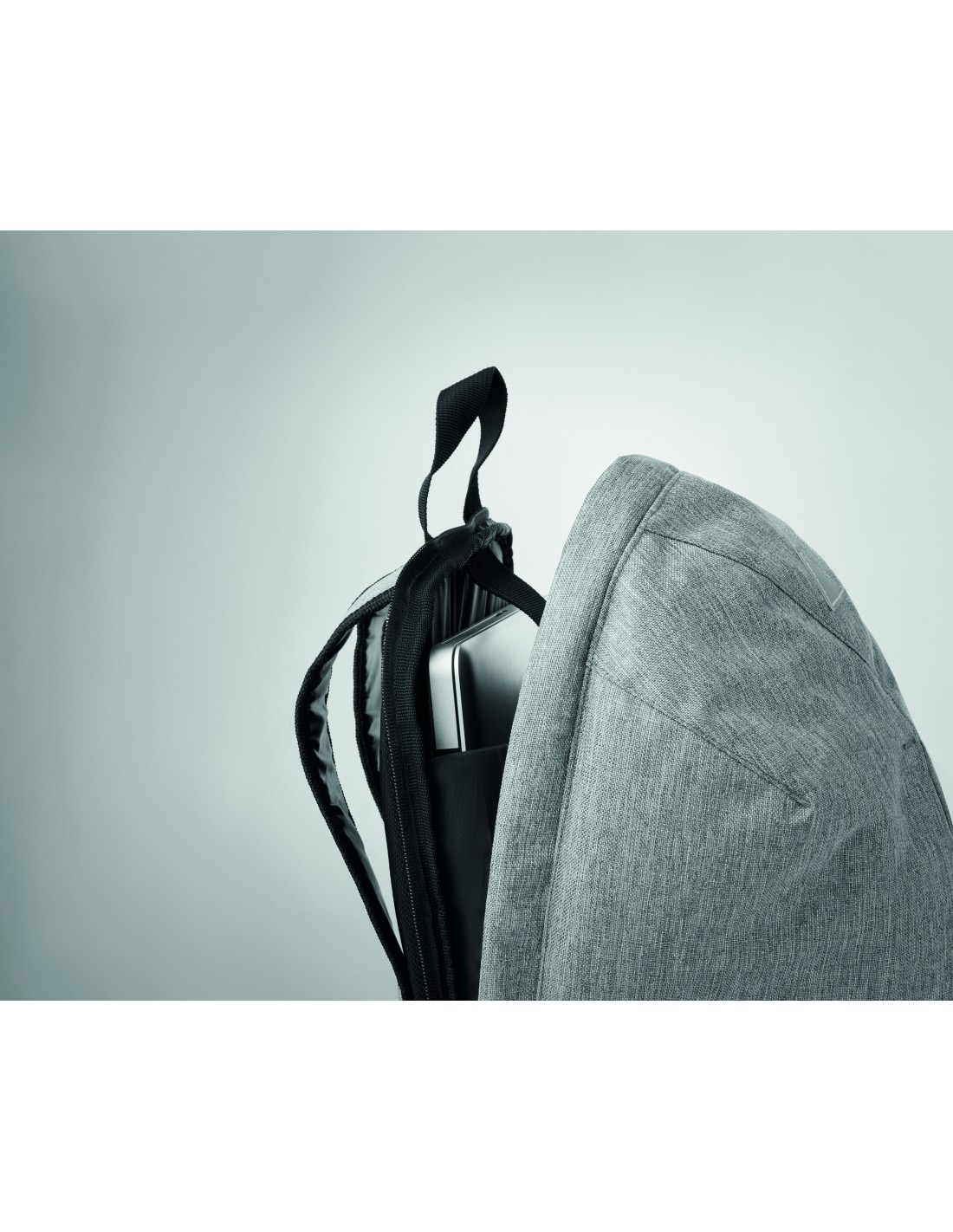 Zaino antifurto in poliestere 600D tono su tono con tasca esterna con chiusura zip. Comparto per laptop 13''. Comparto sul retro con chiusura a zip.