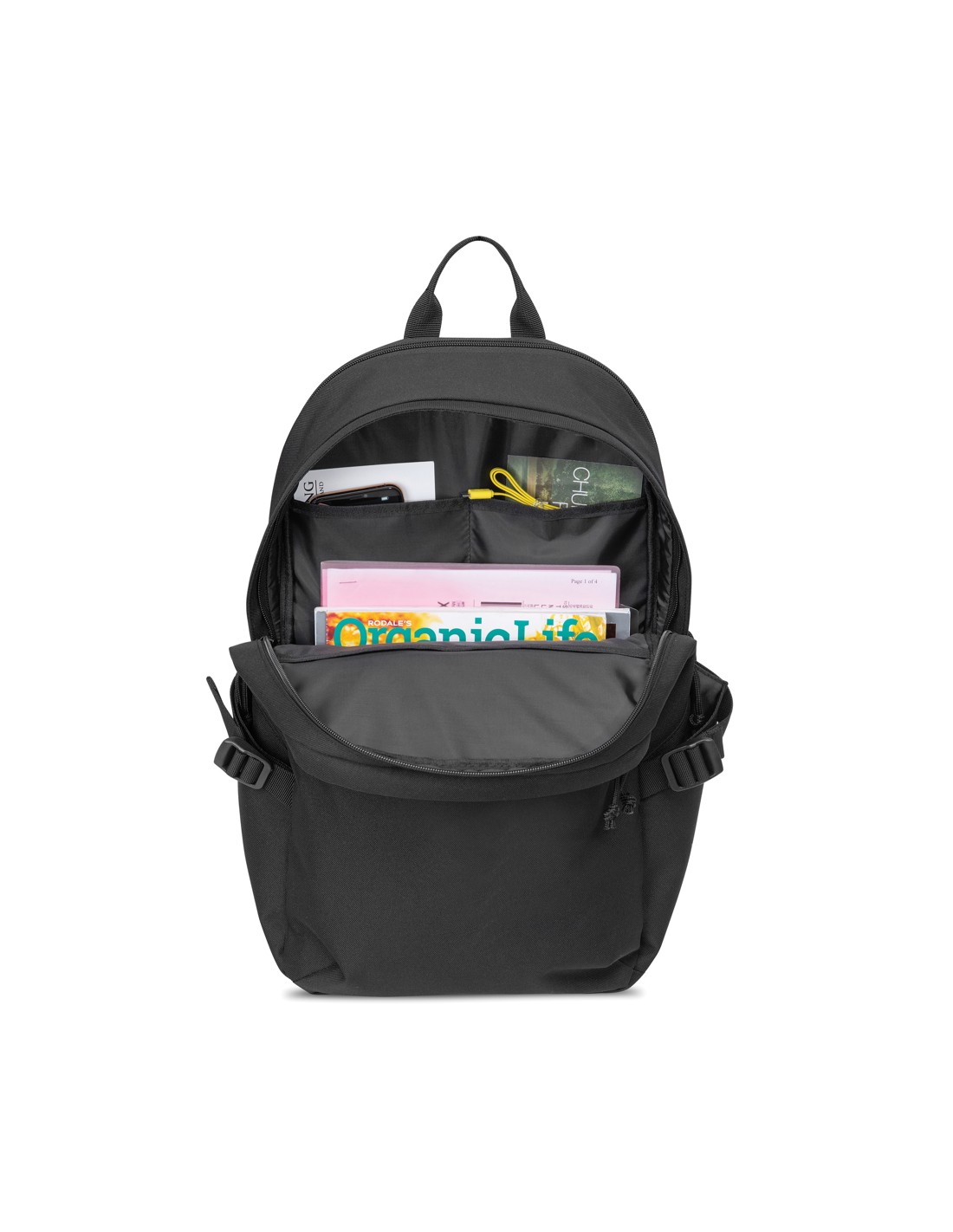 Una versione moderna e sostenibile di un classico zaino per computer, realizzato con tessuto riciclato e nastri in plastica riciclata da bottiglie. Tasca superiore con doppia cerniera per riporre gli accessori. Tasca frontale con cerniera e clip portachiavi. Doppie tasche laterali per bottiglie d'acqua con cinghie di compressione. Scomparto posteriore imbottito con doppia cerniera per computer portatile (fino a 15"). Scomparto principale con cerniera e tasche interne per organizzare gli oggetti. Manico superiore. Pannello posteriore imbottito. Spallacci imbottiti e regolabili. Disponibile su entrambe le sponde dell'Atlantico. Questo articolo è offerto anche da Gemline per i clienti negli Stati Uniti e in Canada.