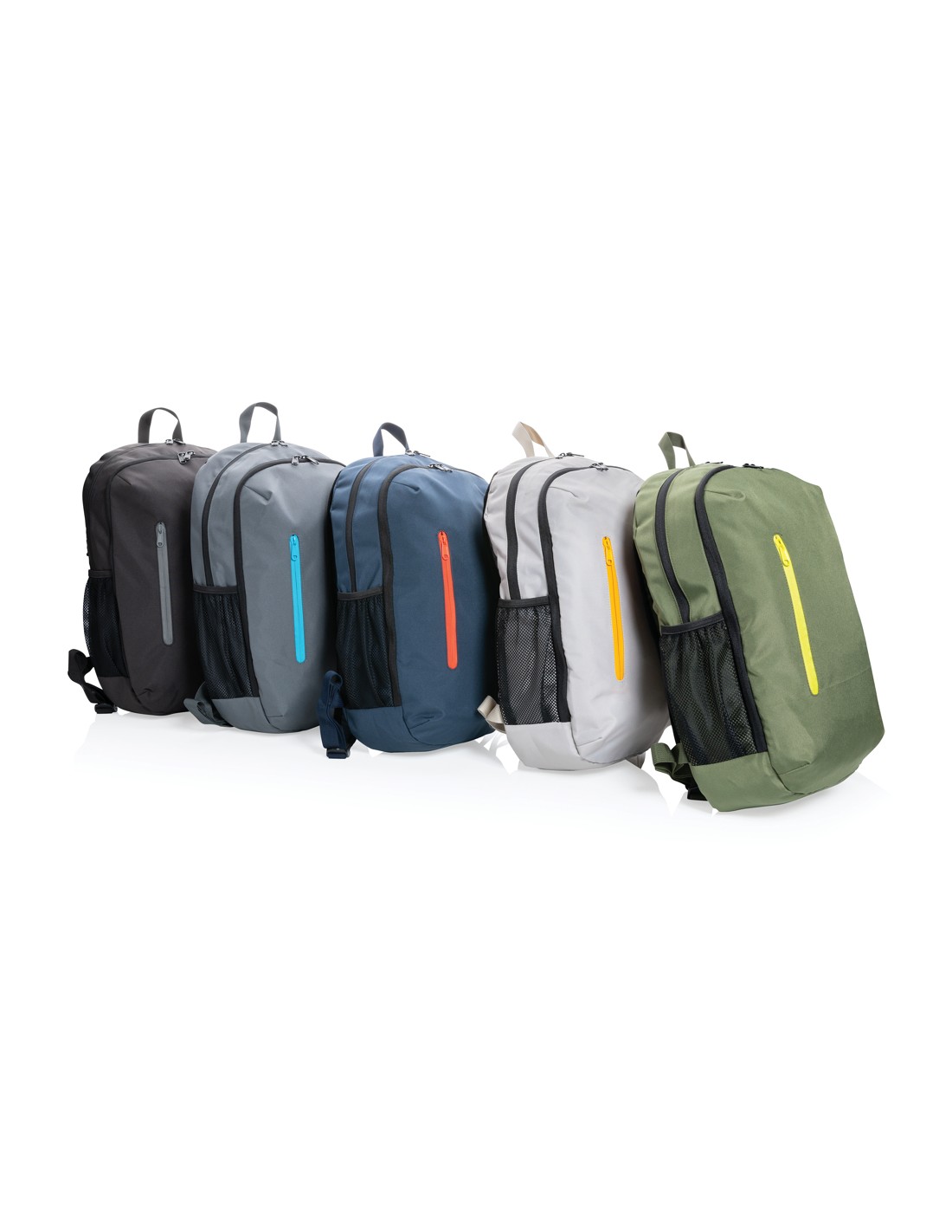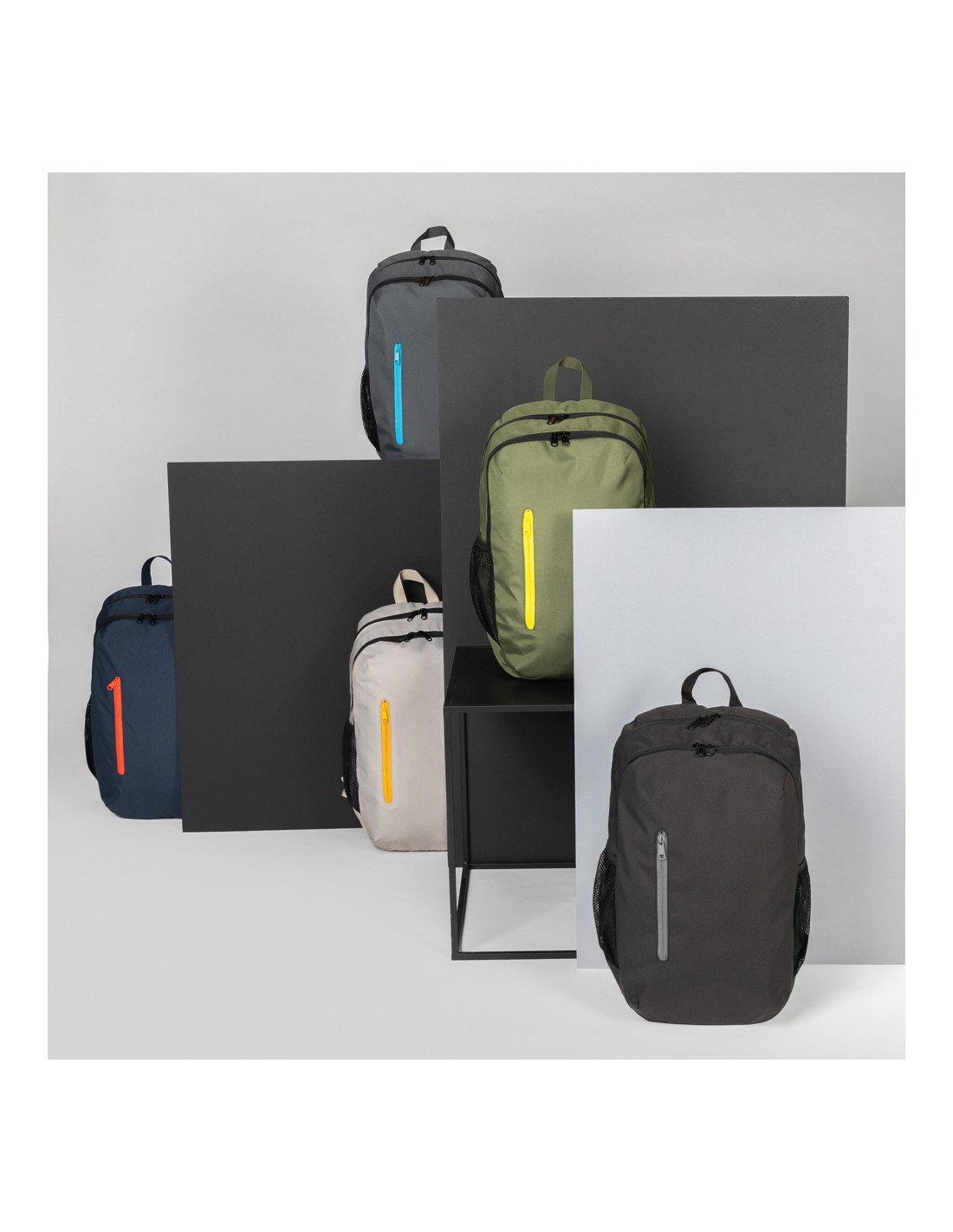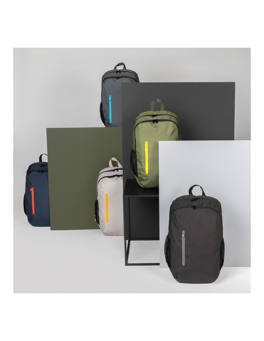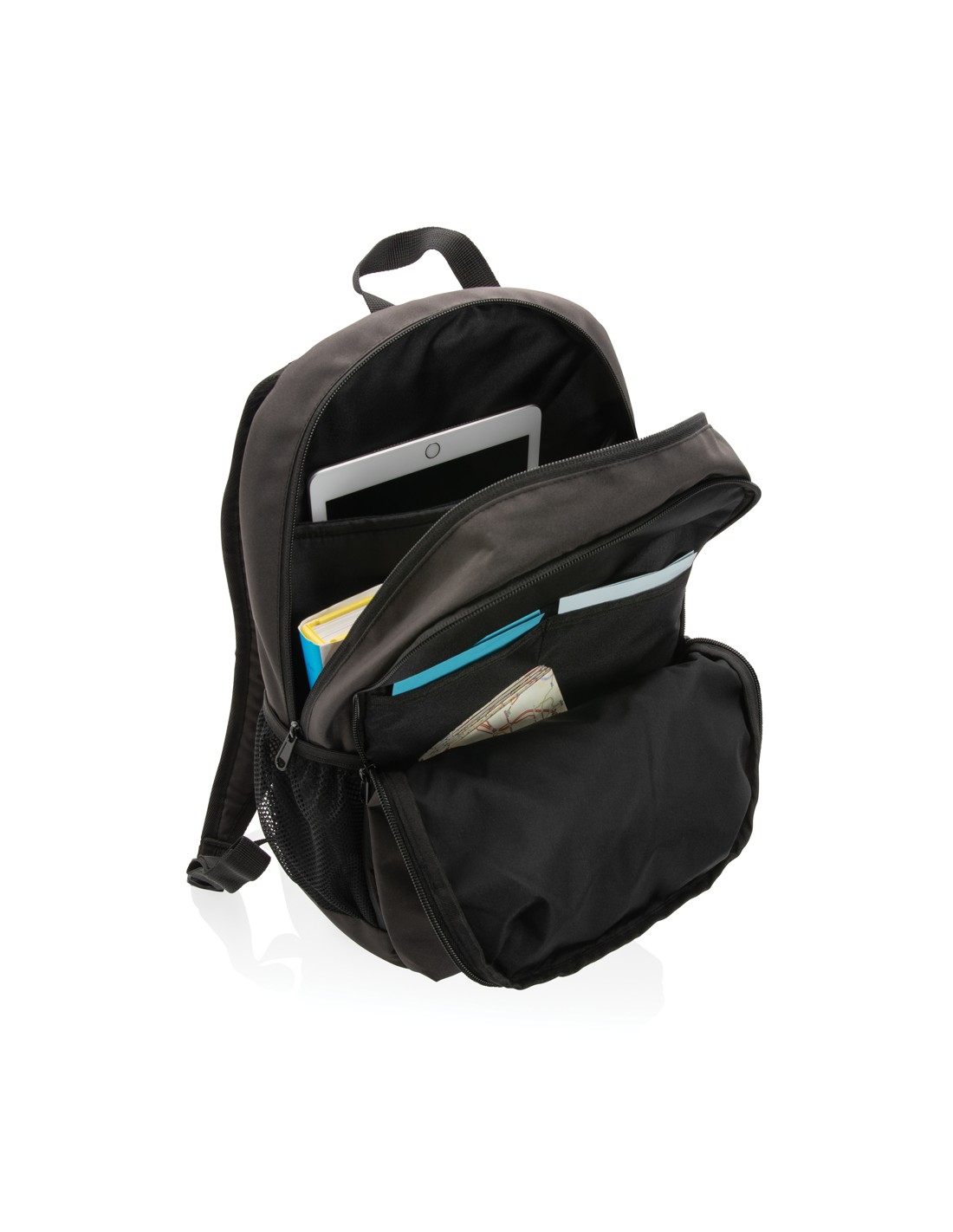 Lo zaino casual Impact AWARE™ 300D RPET offre molto spazio. La tasca frontale con zip è il posto sicuro per contenere piccoli oggetti da raggiungere con facilità. Lo scomparto centrale include 2 tasche aperte e lo scomparto principale presenta un alloggio per PC da 15 pollici. Comodi spallacci e 2 tasche esterne in rete per le tue bottiglie. Perfetto per trasportare la tua attrezzatura da palestra o per fare un'escursione. L'esterno è realizzato in 100% poliestere riciclato 300D, la fodera è 100% poliestere riciclato 150D. Con tracciante AWARE™ che convalida l'uso reale di materiali riciclati. Ogni borsa ha riutilizzato 15,39 bottiglie in PET da 0,5 litri. Il 2% del ricavato di ogni prodotto Impact venduto sarà devoluto a Water.org.
