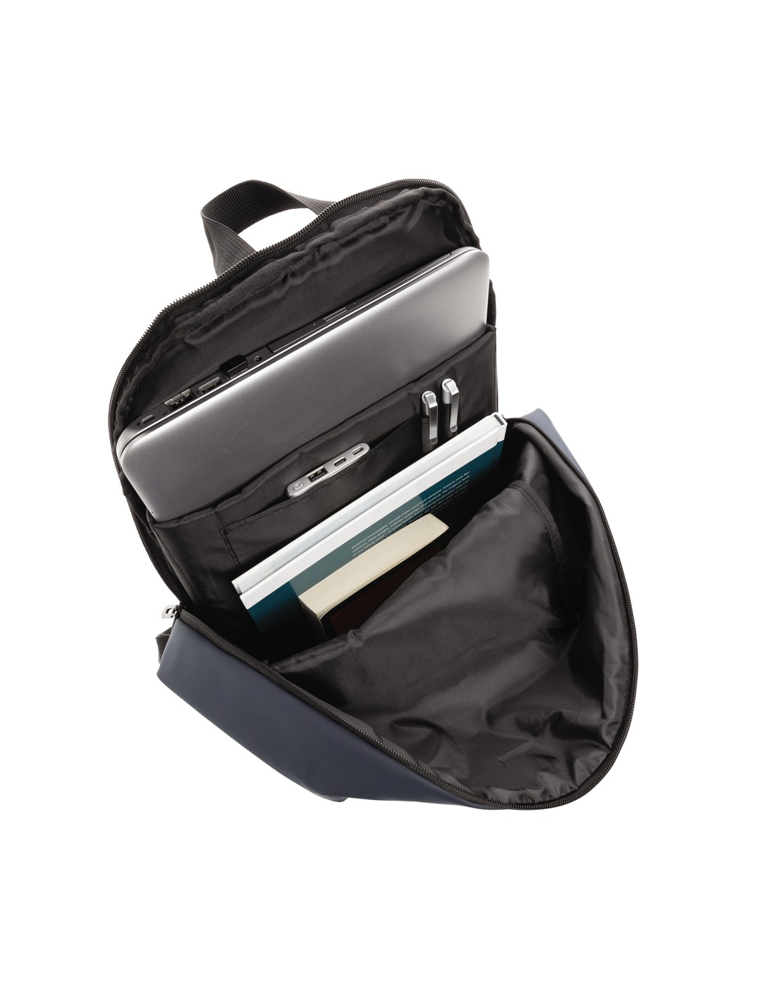 Zaino per laptop da 15 pollici in poliestere 300D RPET. Dispone di 2 ampi scomparti con cerniera, tasche anteriori con doppia cerniera e tasca laterale in rete. Schienale e spallacci imbottiti.