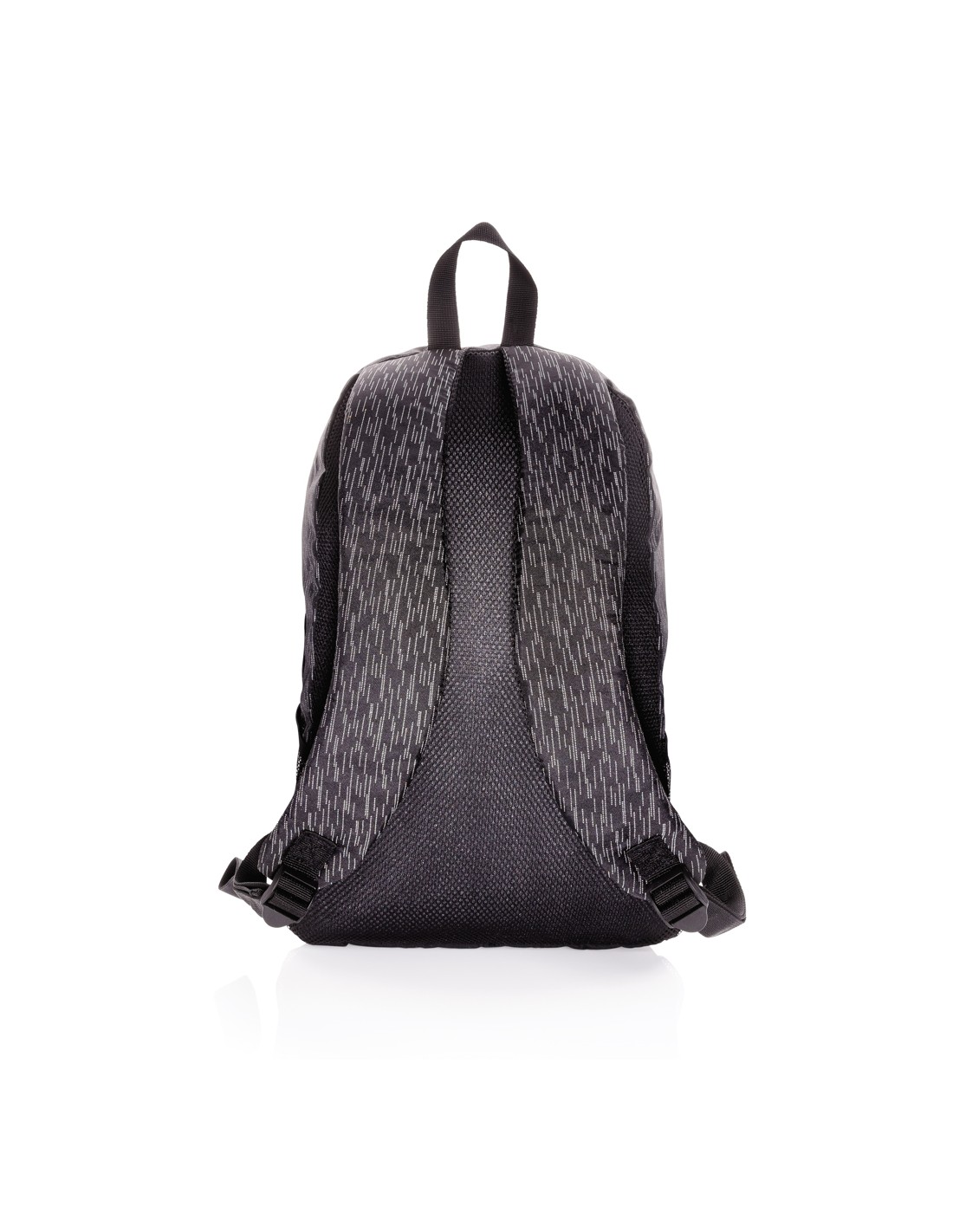 Visibilità e stile per questo zaino realizzato con materiale riciclato al 100% e tracer AWARE™. Con AWARE ™, l'uso di materiali in puro tessuto riciclato e le dichiarazioni sull'impatto sulla riduzione dell'acqua sono garantiti, grazie all'eccezionale tracer AWARE e la tecnologia blockchain. Risparmia acqua e utilizza tessuti riciclati genuini. Lo zaino presenta una moderna stampa riflettente su tutta la superficie, uno scomparto principale per un computer da 15,6 pollici, una tasca frontale con cerniera e 2 tasche in rete. Spallacci regolabili. Privo di PVC. Con questa borsa si sono risparmiati 8 litri di acqua e sono state utilizzate 16 bottiglie di plastica.