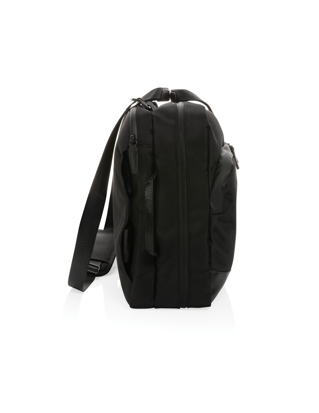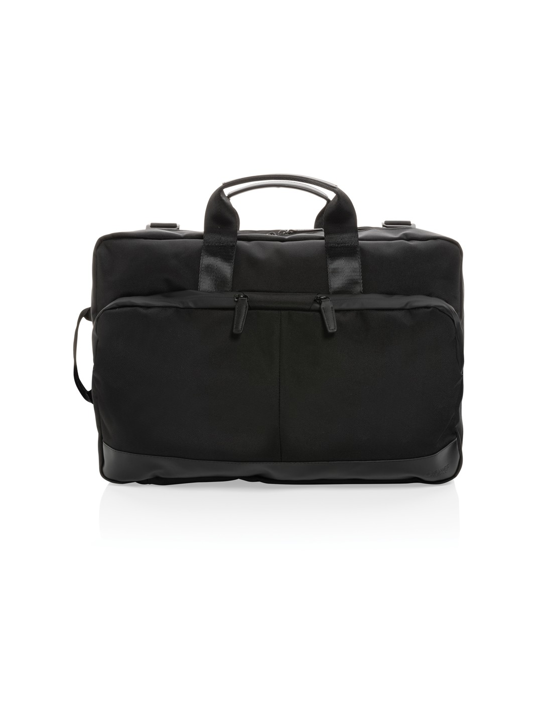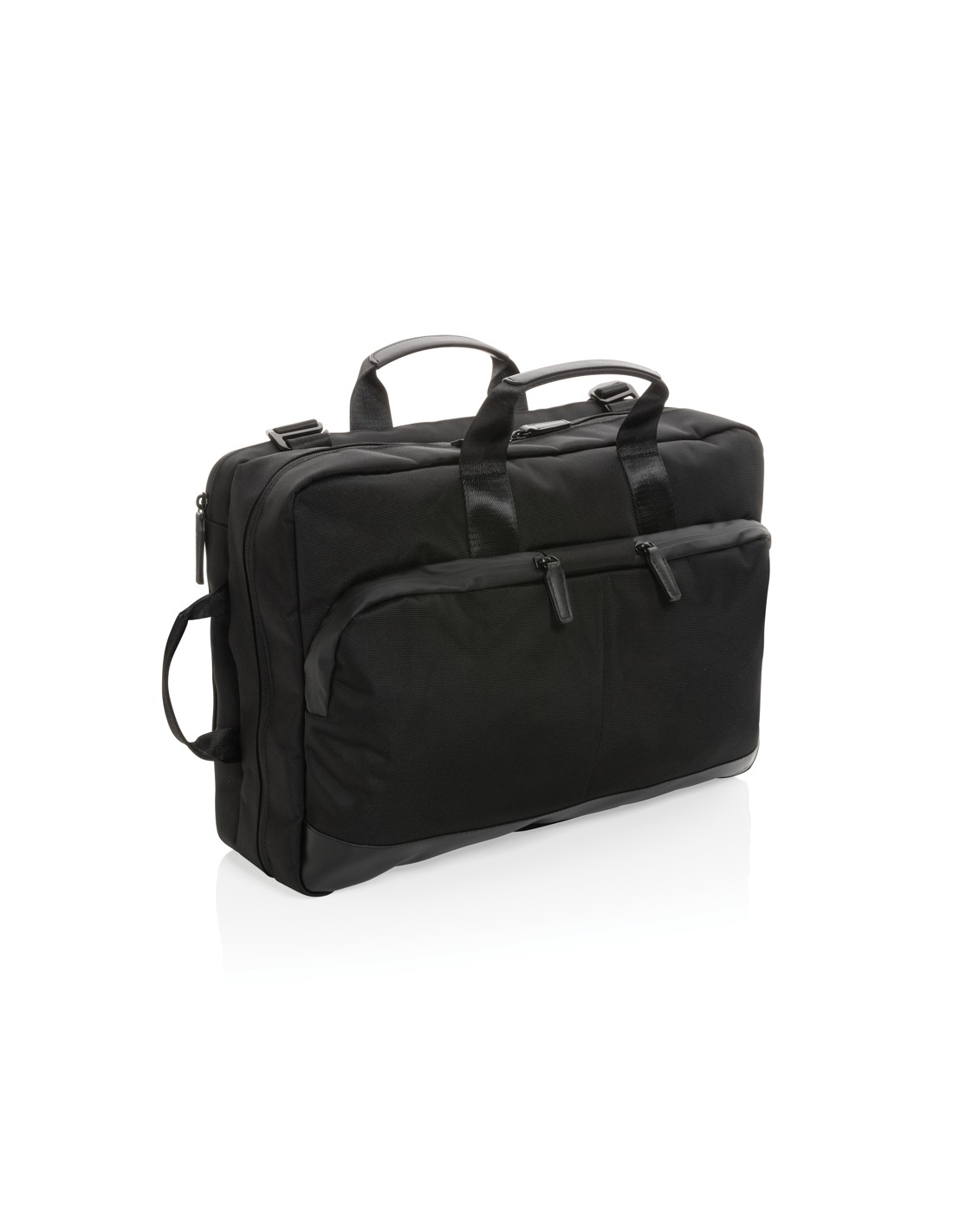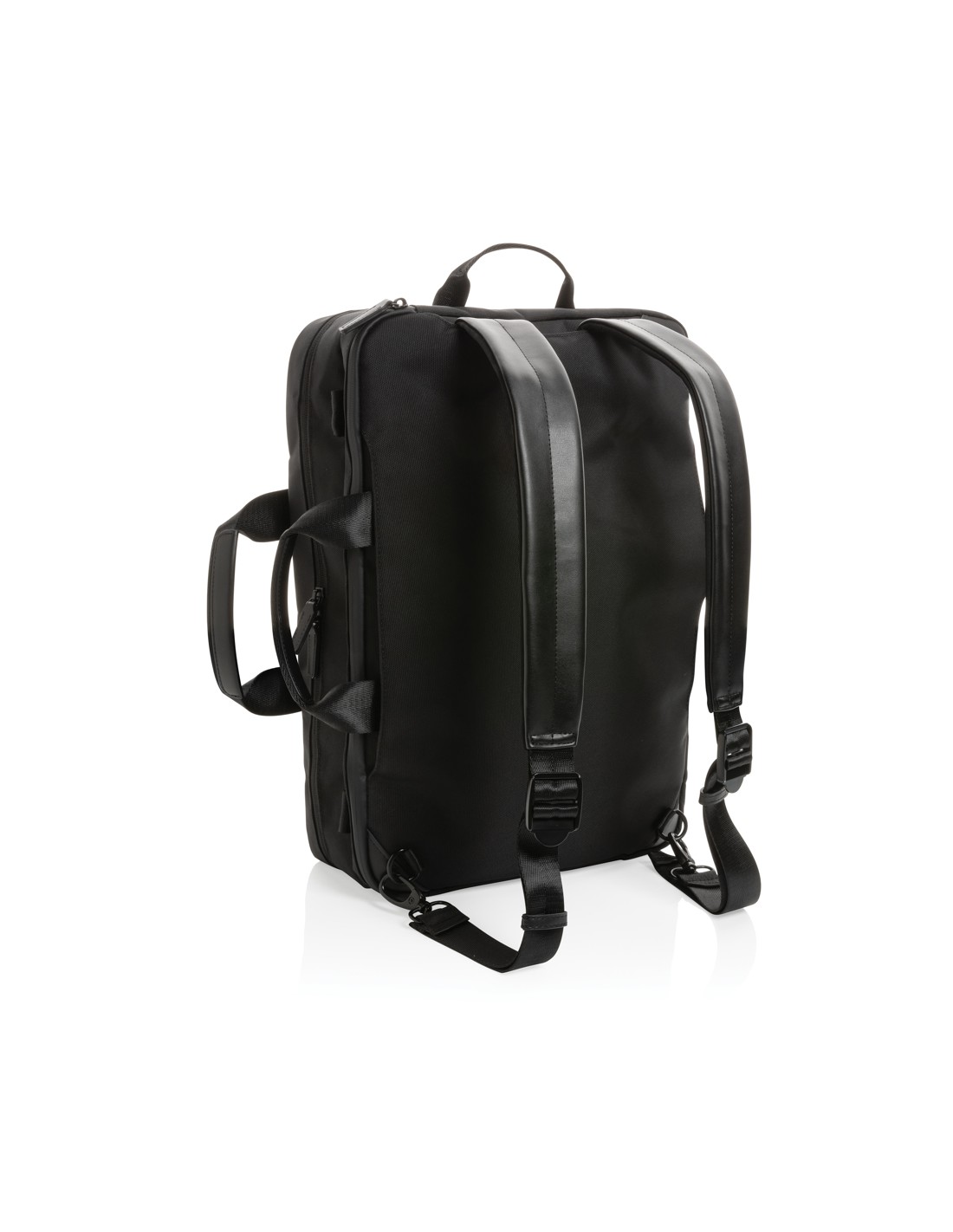 Zaino porta laptop da 15'' in poliestere 600D. Spallacci imbottiti. 1 cavo per carica USB. Patta con chiusura a calamita e tasca frontale con chiusura a zip.