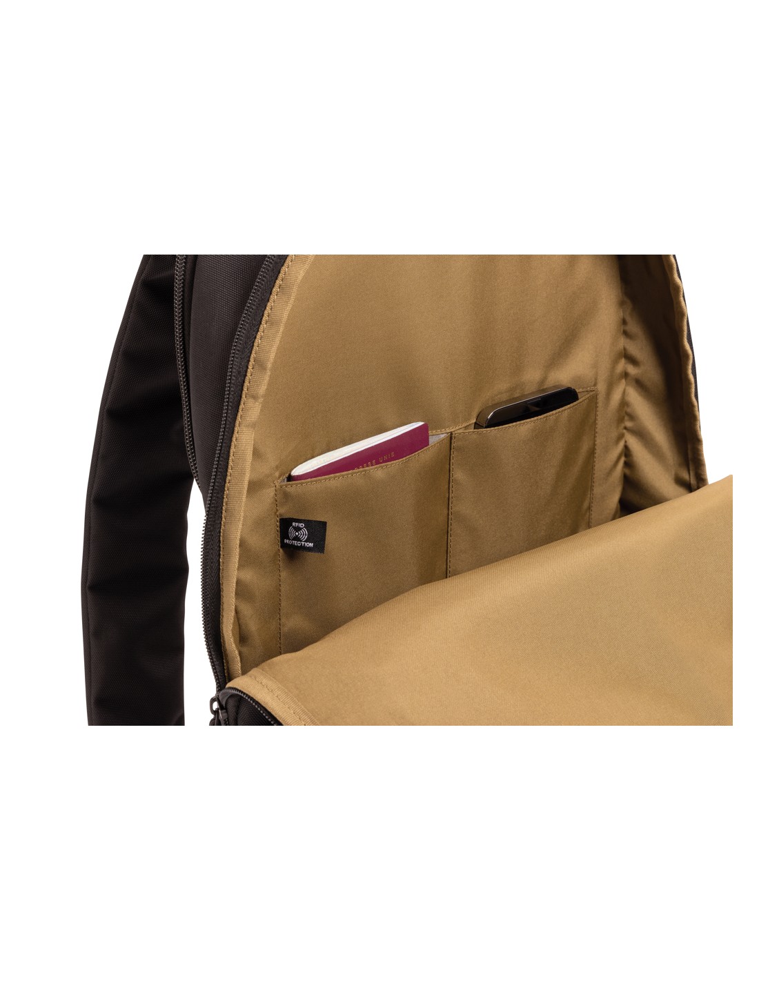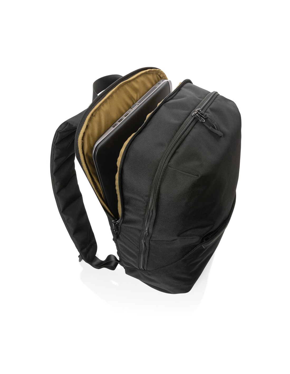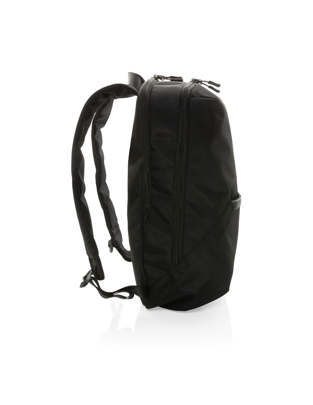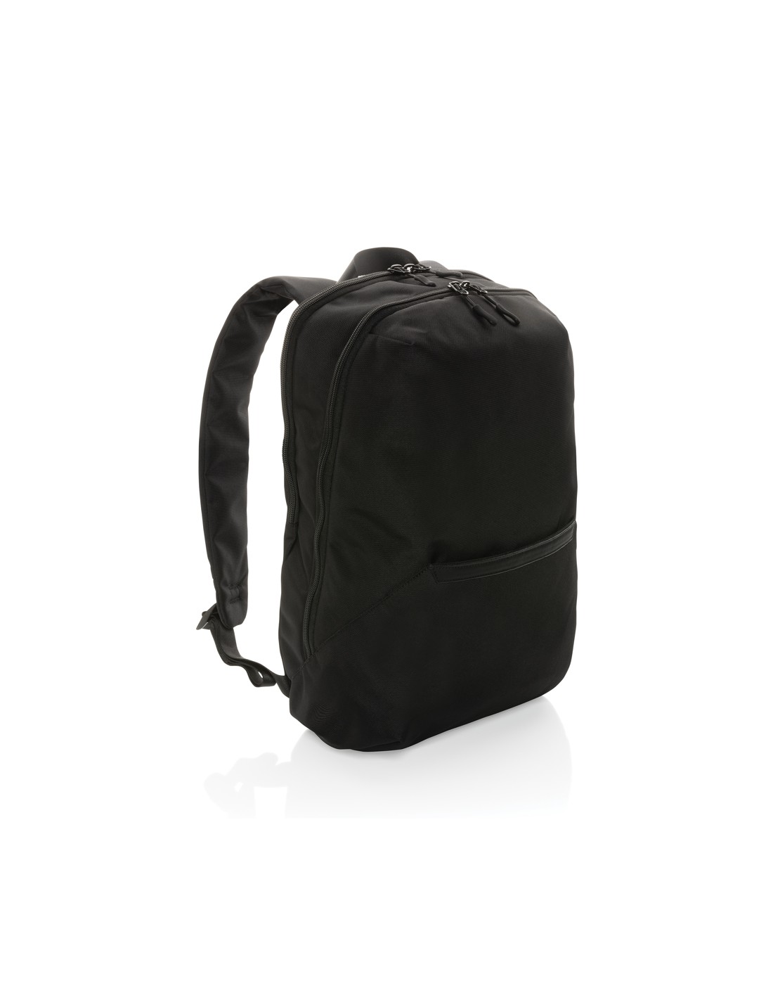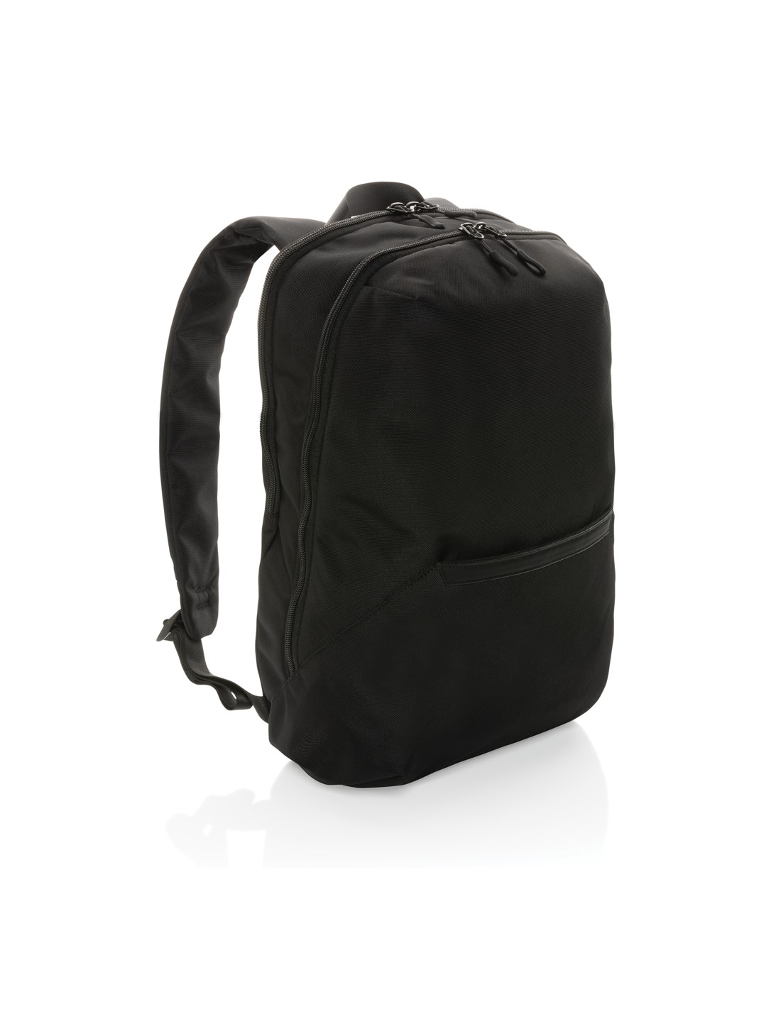 Zaino per laptop da 15 pollici in poliestere 300D RPET. Dispone di 2 ampi scomparti con cerniera, tasche anteriori con doppia cerniera e tasca laterale in rete. Schienale e spallacci imbottiti.