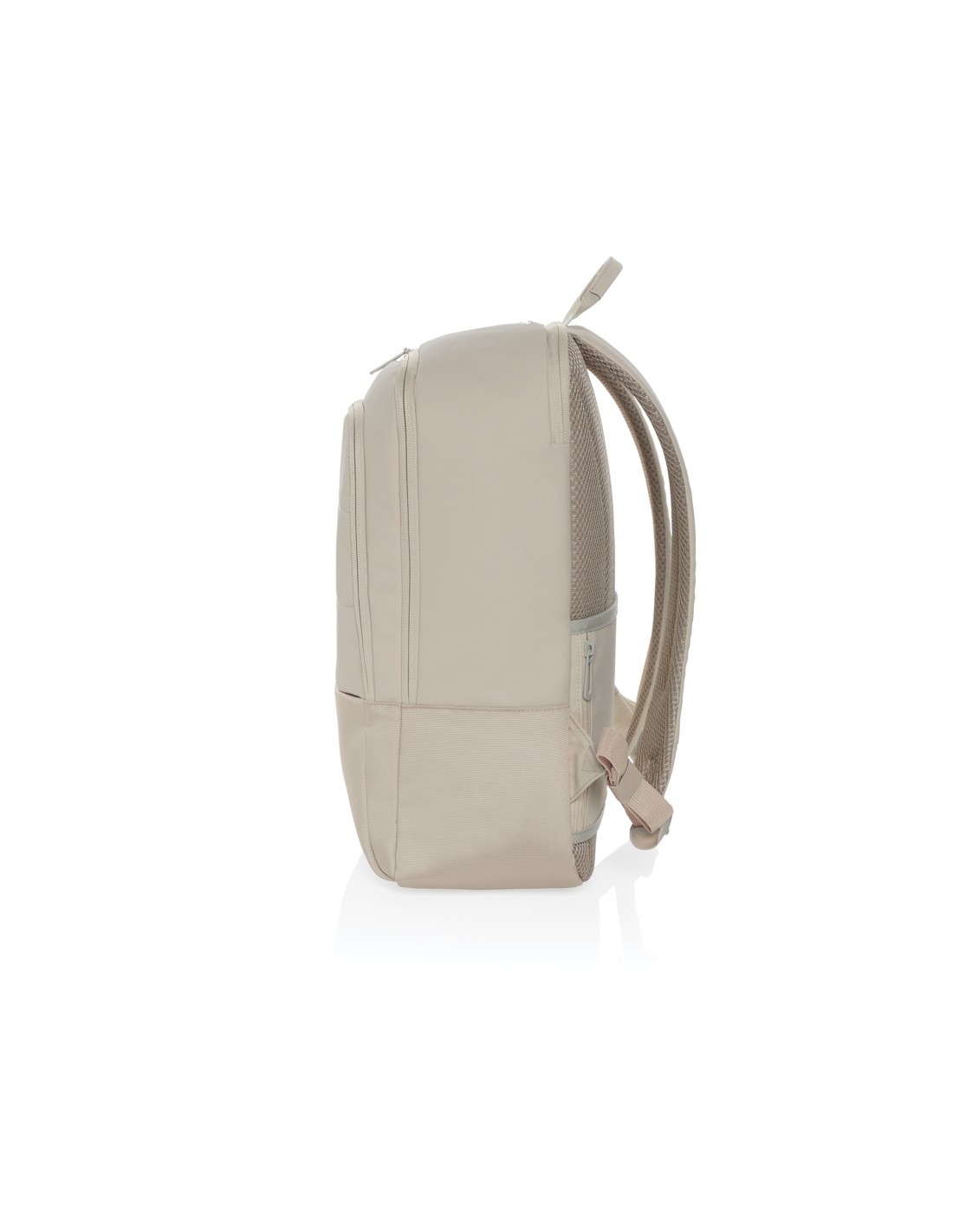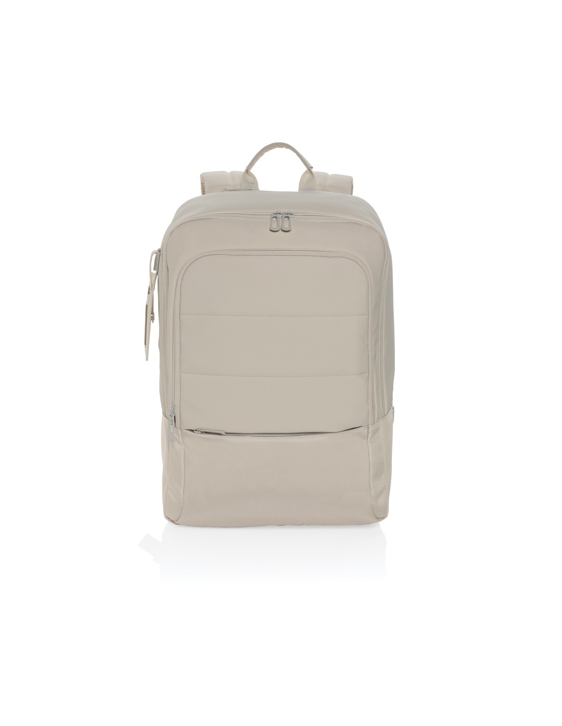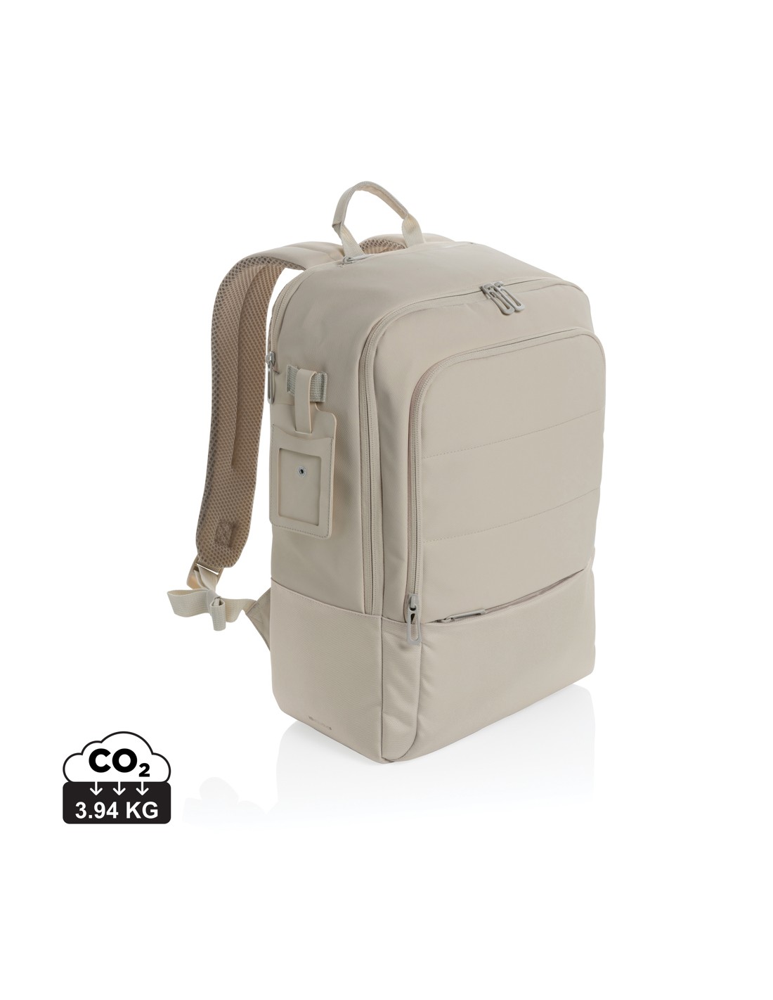 Zaino per laptop da 15 pollici in poliestere 300D RPET. Dispone di 2 ampi scomparti con cerniera, tasche anteriori con doppia cerniera e tasca laterale in rete. Schienale e spallacci imbottiti.