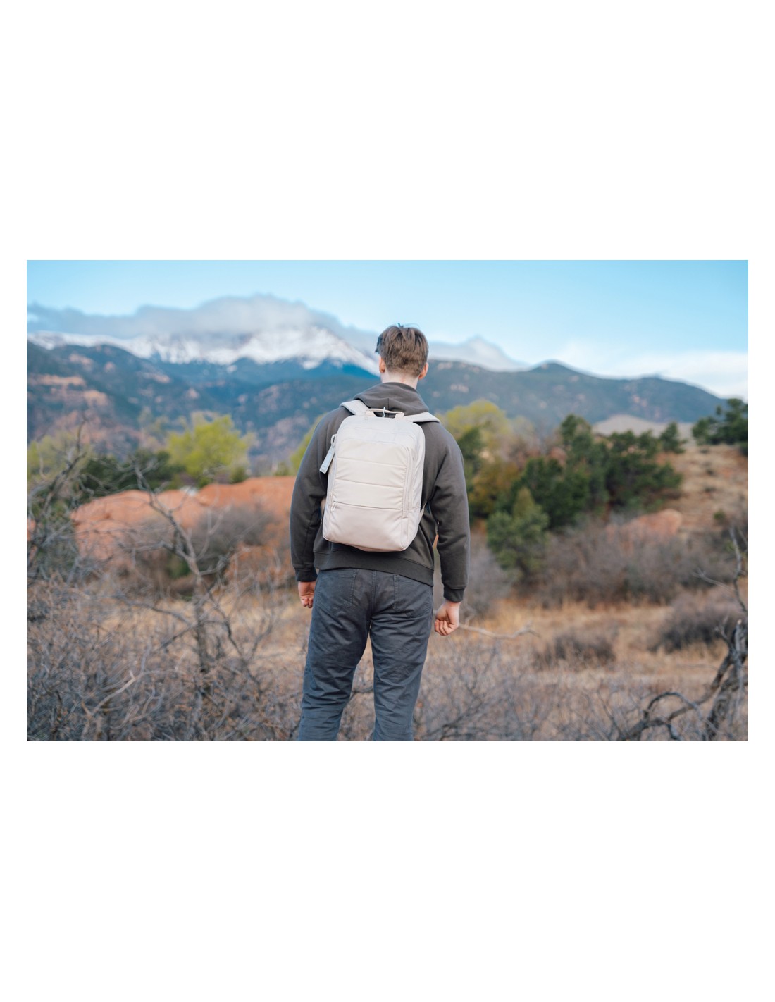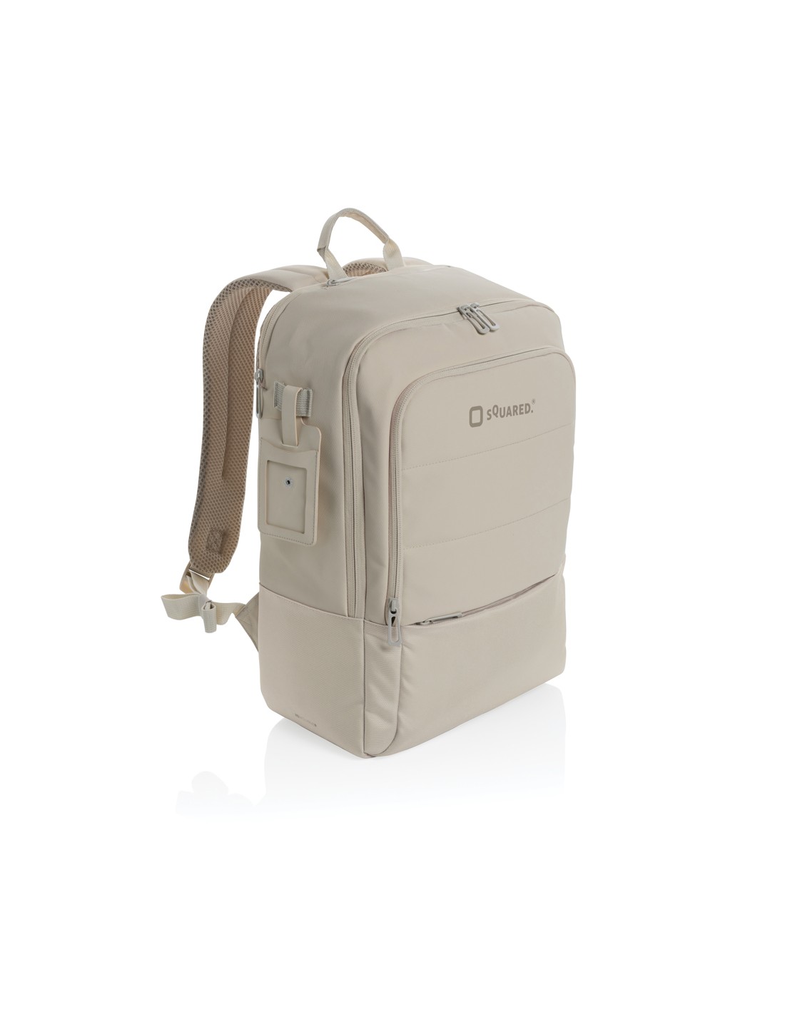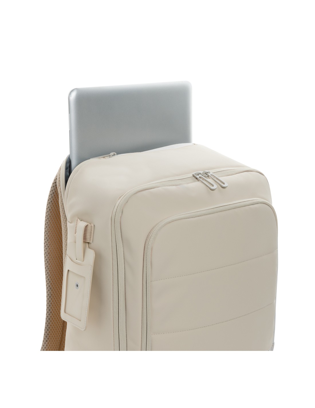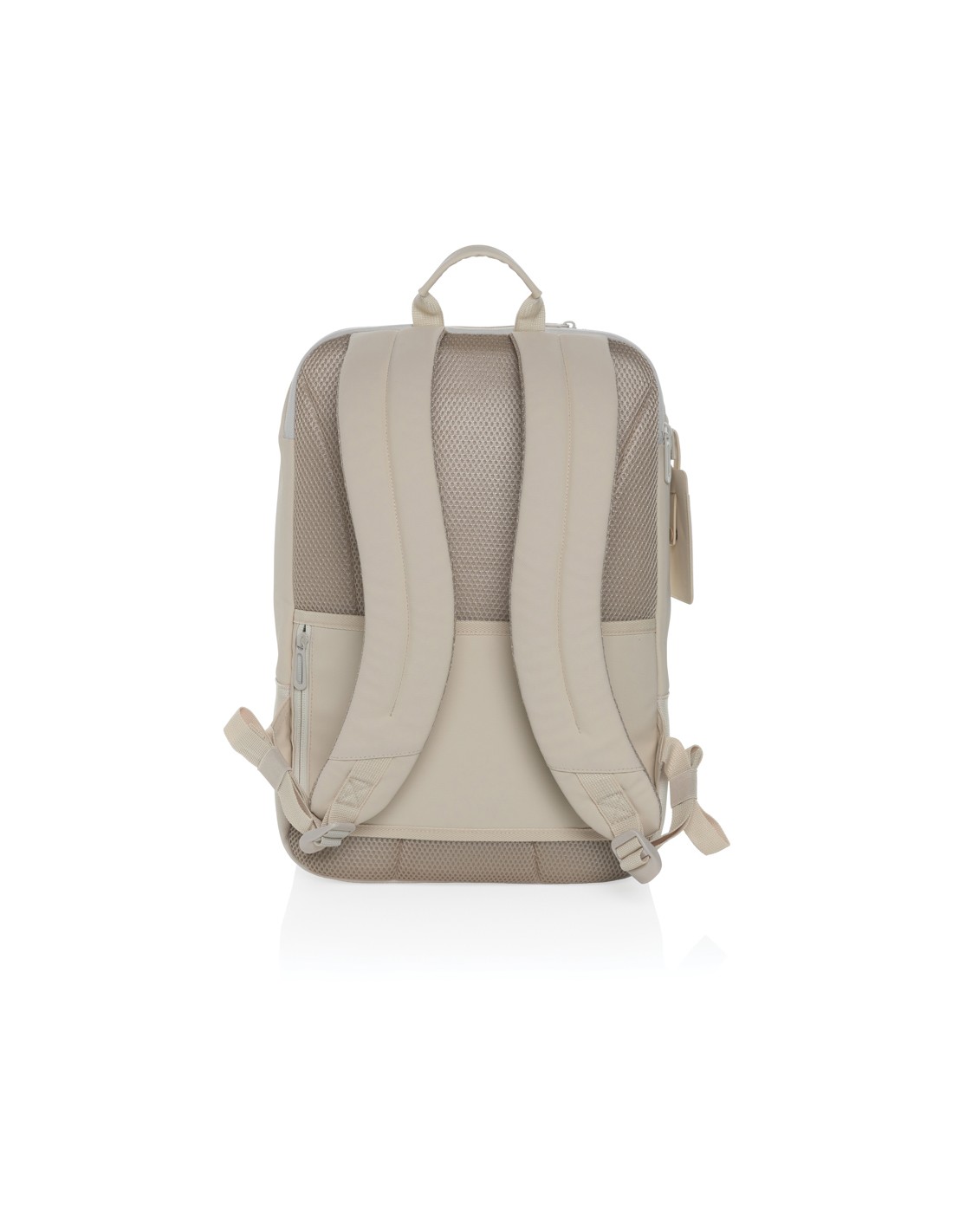 Zaino per laptop da 15 pollici in poliestere 300D RPET. Dispone di 2 ampi scomparti con cerniera, tasche anteriori con doppia cerniera e tasca laterale in rete. Schienale e spallacci imbottiti.