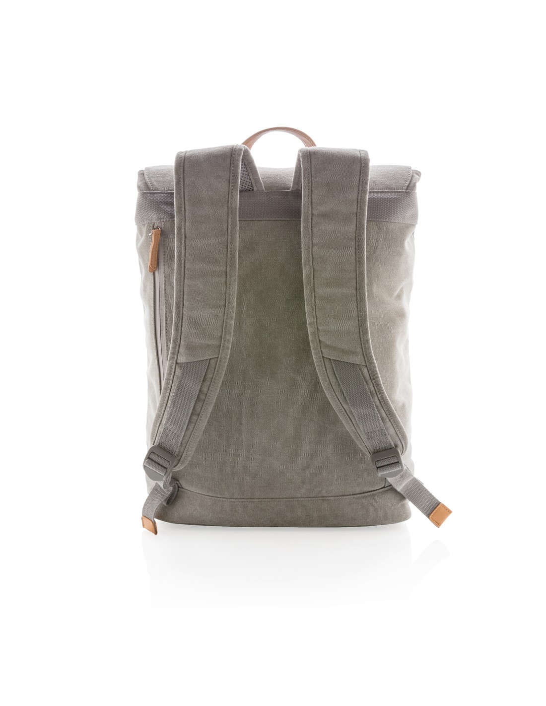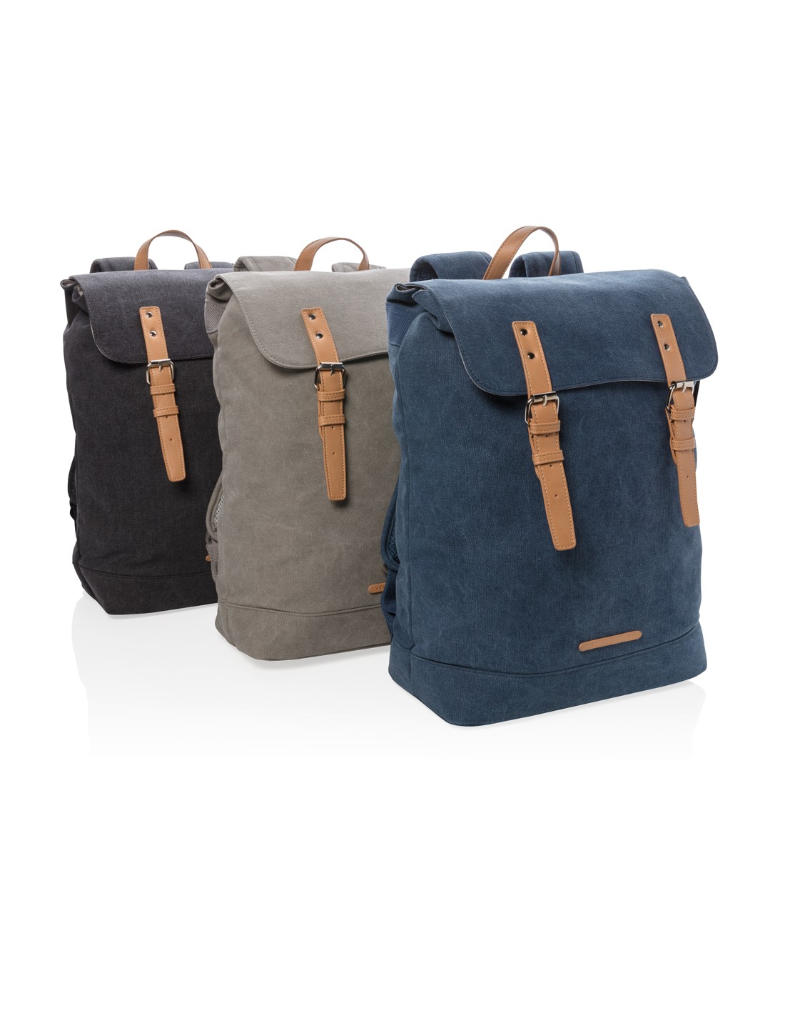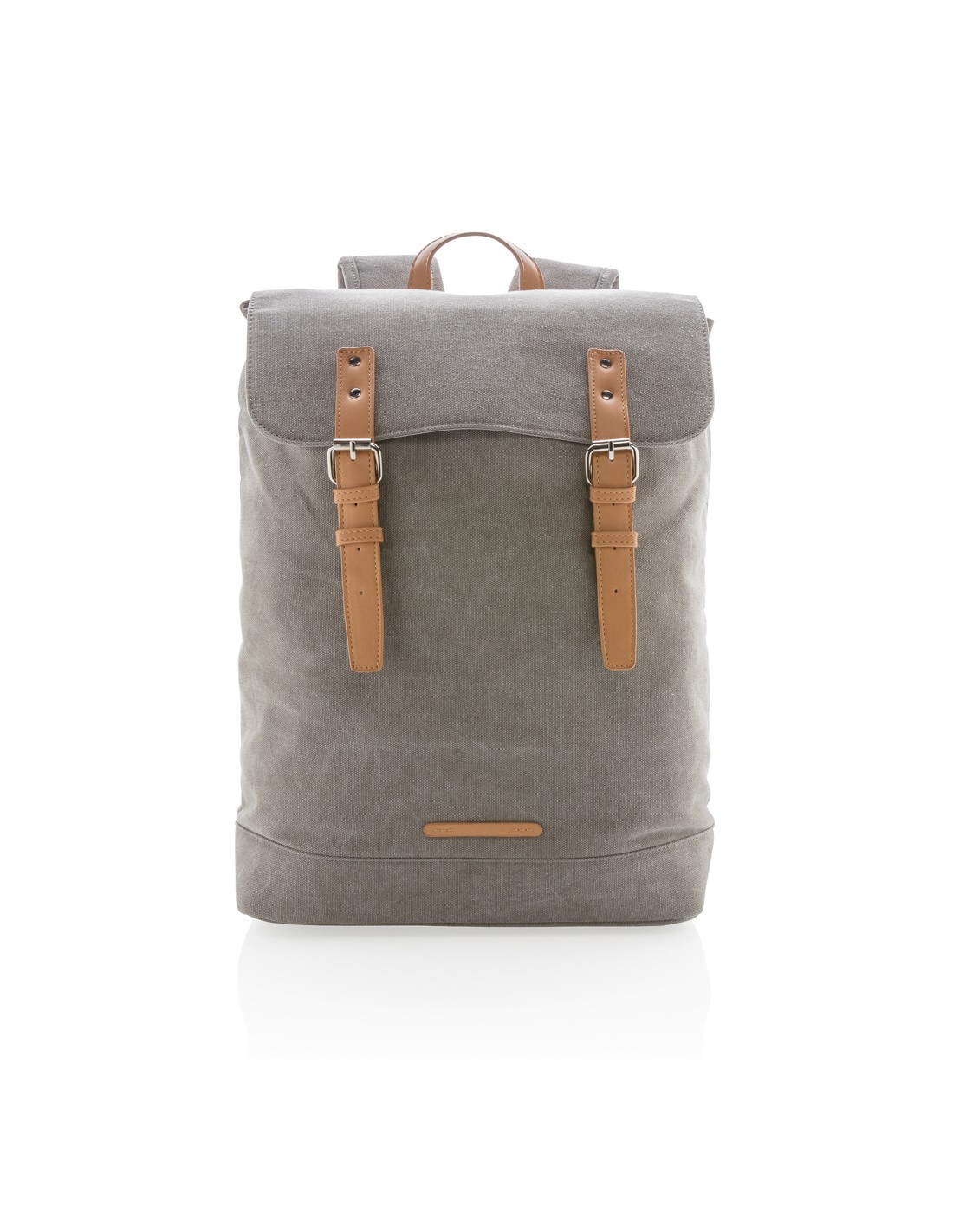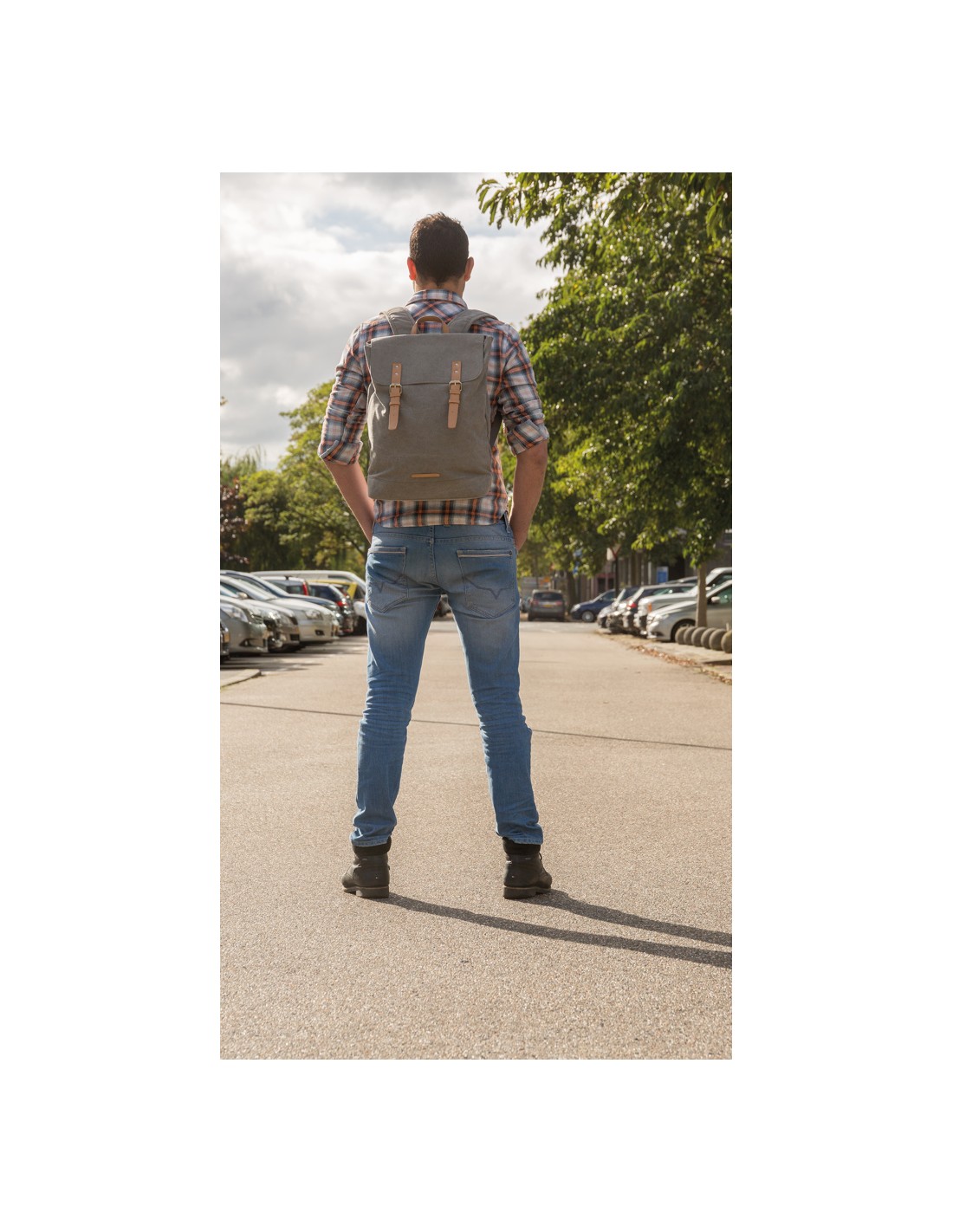 Metti le tue cose indispensabili per i tuoi viaggi in questo zaino in canvas resistente. Include uno scomparto imbottito porta PC da 15". La patella si richiude tramite 2 fibbie magnetiche in similpelle. Senza PVC.