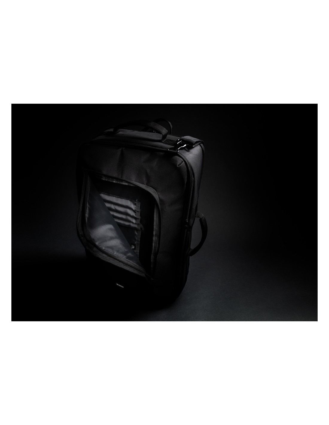 Rompi le barriere grazie a questo zaino convertibile. La funzionalità e le caratteristiche business lo rendono la scelta adatta per tutti i giorni. Usalo in 4 diverse modalità: 1. Zaino: aggancia gli spallacci imbottiti agli anelli di sicurezza e regolali. 2. Tracolla: sgancia e infila gli spallacci nella tasca, attacca e regola la tracolla. 3. Crossbody: quando completamente piena, regola la tracolla fino a farla aderire al corpo per una modalità di trasporto più confortevole e sicura. 4. 24Ore: infila gli spallacci e e rimuovi la tracolla e utilizza il manico superiore o laterale. Include scomparto imbottito porta PC da 15.6". Presenta inoltre un ampio scomparto principale e una tasca frontale con cerniera. Include inoltre tasche interne con protezione RFID e cinghia per trolley. Senza PVC.