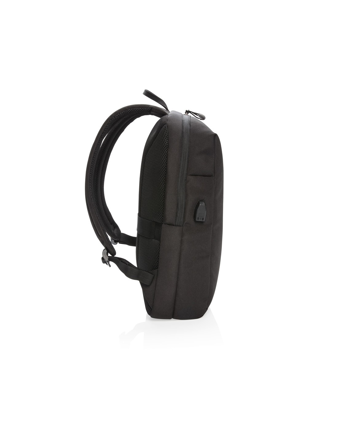Questo elegante zaino porta PC è pensato per viaggi di lavoro e di piacere. È progettato con uno scomparto imbottito per computer da 15,6" per proteggere il tuo dispositivo. Include cinghia per trolley e uscita USB A. Tasca laterale ad accesso rapido con protezione RFID. Parte anteriore con striscia di sicurezza riflettente. Senza PVC. Include tracciante AWARE™ che garantisce l'uso genuino di materiali riciclati. Ogni zaino ha riutilizzato 22 bottiglie in PET. Il 2% del ricavato di ogni prodotto Aware™ venduto sarà donato a Water.org. Blocco NFC (13,56 MHz).