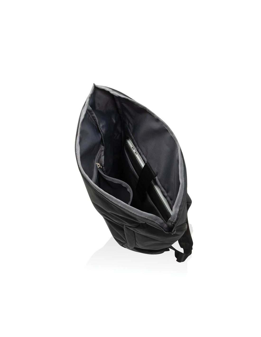 Zaino in RPET certificato GRS che dispone di scomparto principale aperto con pannello divisorio, custodia per portatile da 15" imbottita e 2 tasche con protezione RFID. Porta USB sul lato destro per collegare e caricare facilmente i dispositivi dall'interno. Dispone di spallacci imbottiti,...