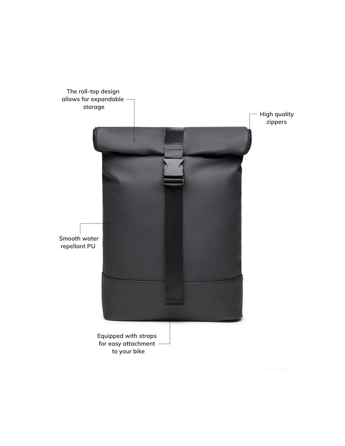 Una borsa elegante e contemporanea in morbido PU. Grazie al suo design versatile può essere utilizzata sia come zaino che come borsa spesa. L'intelligente tasca imbottita per computer è il posto perfetto per riporre i tuoi dispositivi in tutta sicurezza. Puoi anche attaccare questa borsa al telaio della tua bici. Il connubio perfetto tra praticità e stile! Adatto a computer da 17 pollici. Attenzione: le dimensioni dello schermo non corrispondono alle dimensioni dell'intero computer.