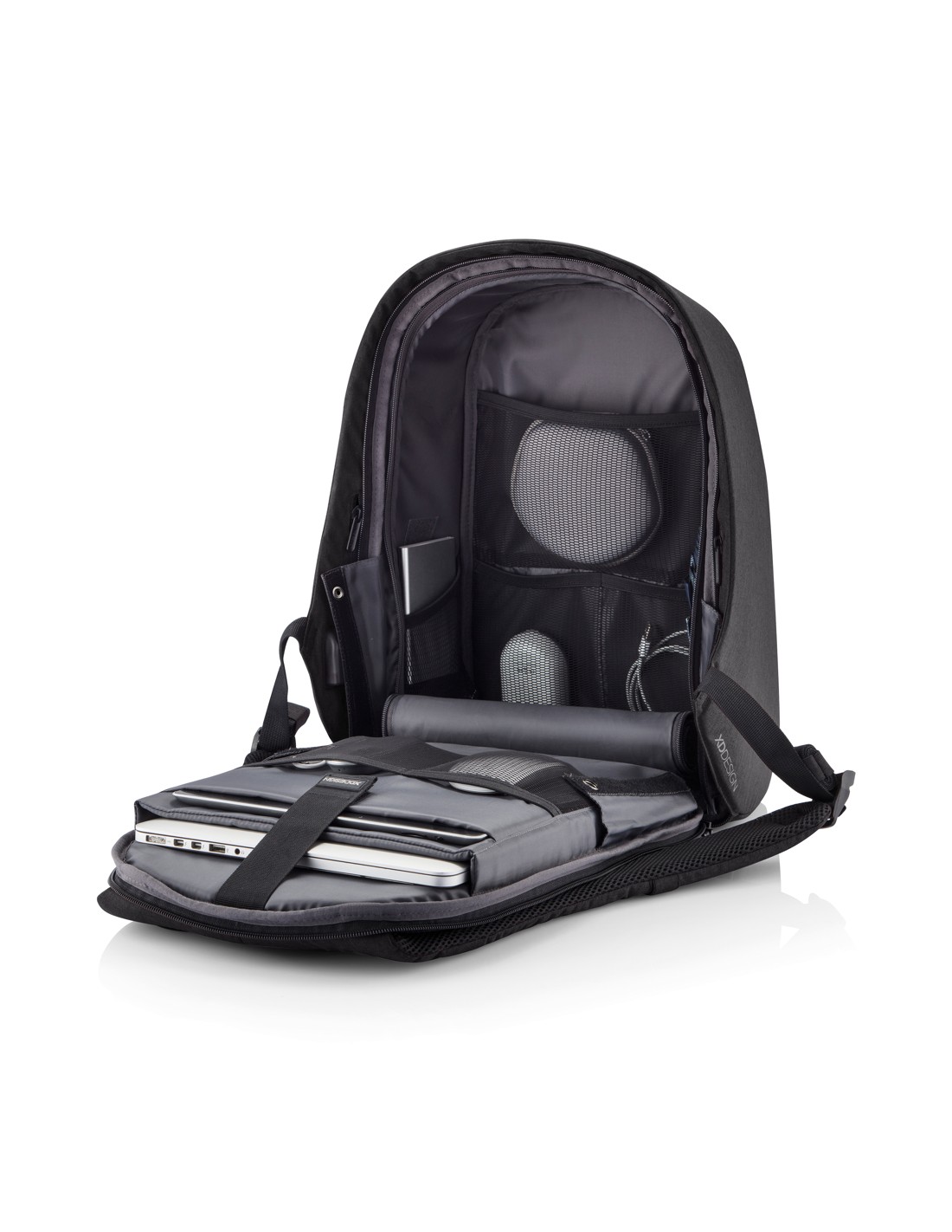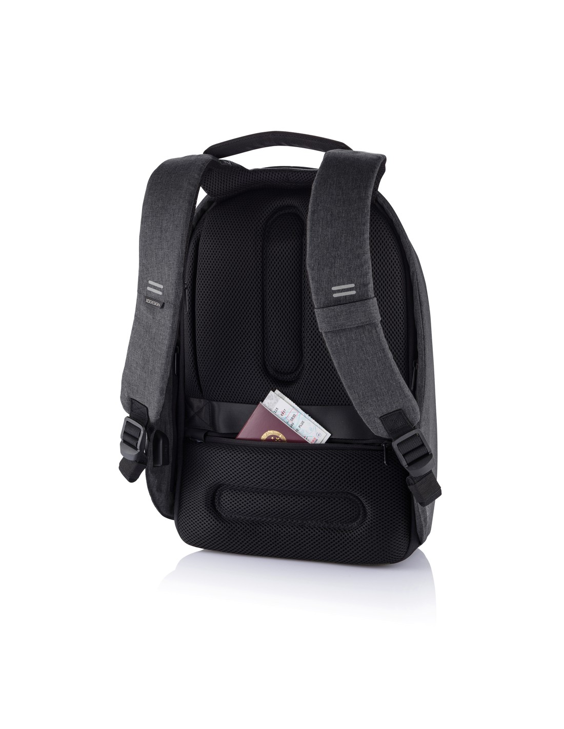 La linea Bobby Hero rappresenta una nuova era negli zaini antitaccheggio, offrendo sicurezza, maneggevolezza e organizzazione per i vostri spostamenti quotidiani. Protezione antitaglio, chiusure lampo discrete e tasche nascoste garantiscono la sicurezza dei vostri effetti personali durante gli spostamenti. Bobby Hero Regular è dotato di una porta di ricarica USB integrata, di un tessuto idrorepellente, di inserti riflettenti e di una cinghia per il trasporto dei bagagli per una maggiore comodità. All'interno, gli scomparti imbottiti sono adatti ad accogliere un computer portatile da 17" e un tablet fino a 12,9". Realizzato in rPET con il sistema di tracciamento AWARE™. Con AWARE™, è garantito l'uso di autentico tessuto riciclato. Design registrato®
