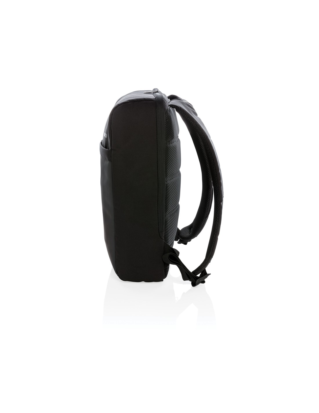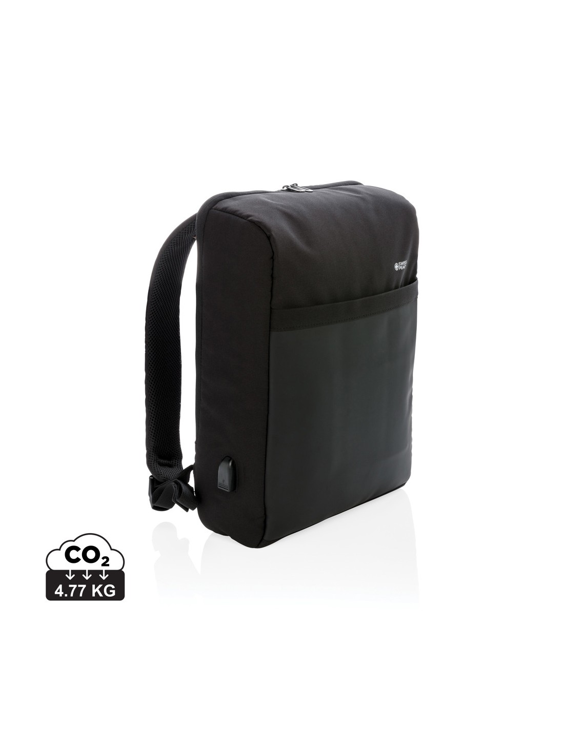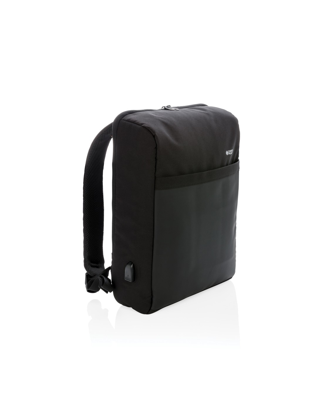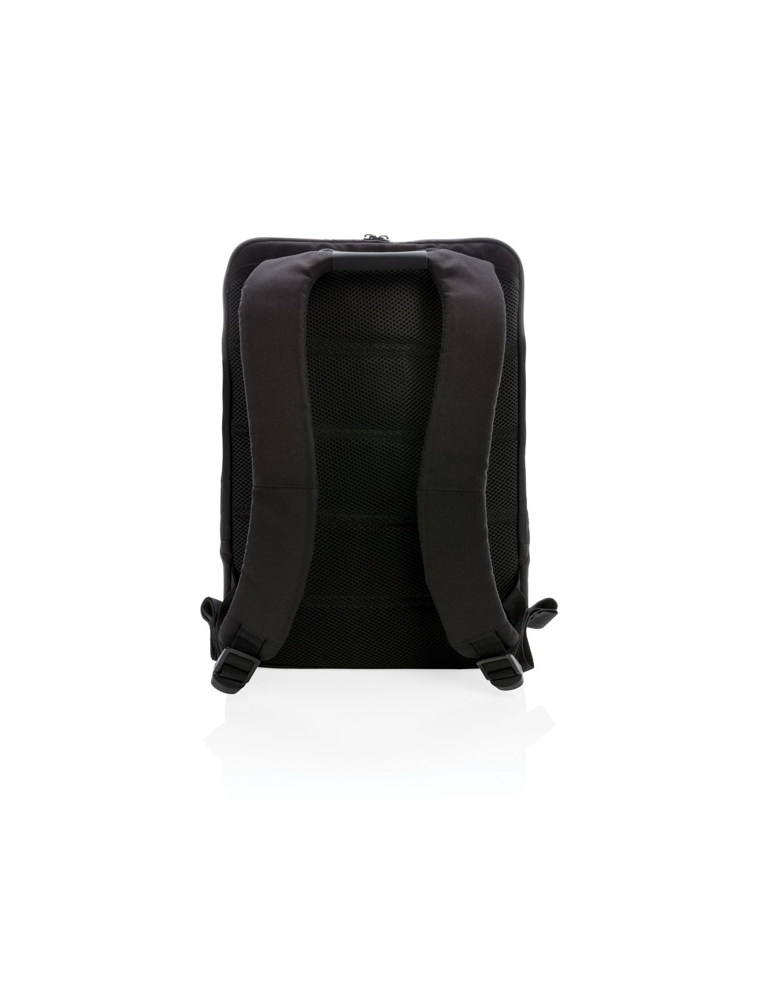 Zaino business realizzato in PET riciclato (equivalente a 22 bottiglie riciclate) con tessuto impermeabile 1680D. Lo zaino è dotato di scomparti imbottiti per portatili e/o tablet da 15,6". Lo zaino può essere chiuso grazie a un moschettone sul davanti e a una tasca anteriore protetta. Sul lato...