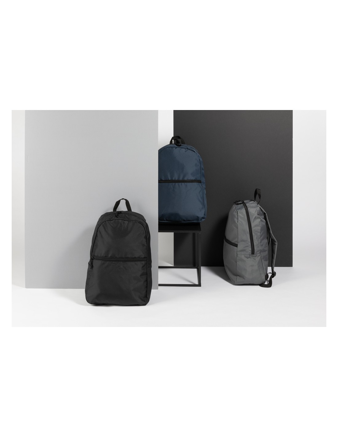 Zaino con tasca anteriore, cerniera impermeabile e scomparti imbottiti per un computer portatile o un tablet. Grazie alla struttura indeformabile e all'imbottititura inferiore, lo zaino protegge perfettamente gli oggetti riposti al suo interno. Consegnato in una custodia in tessuto non tessuto.