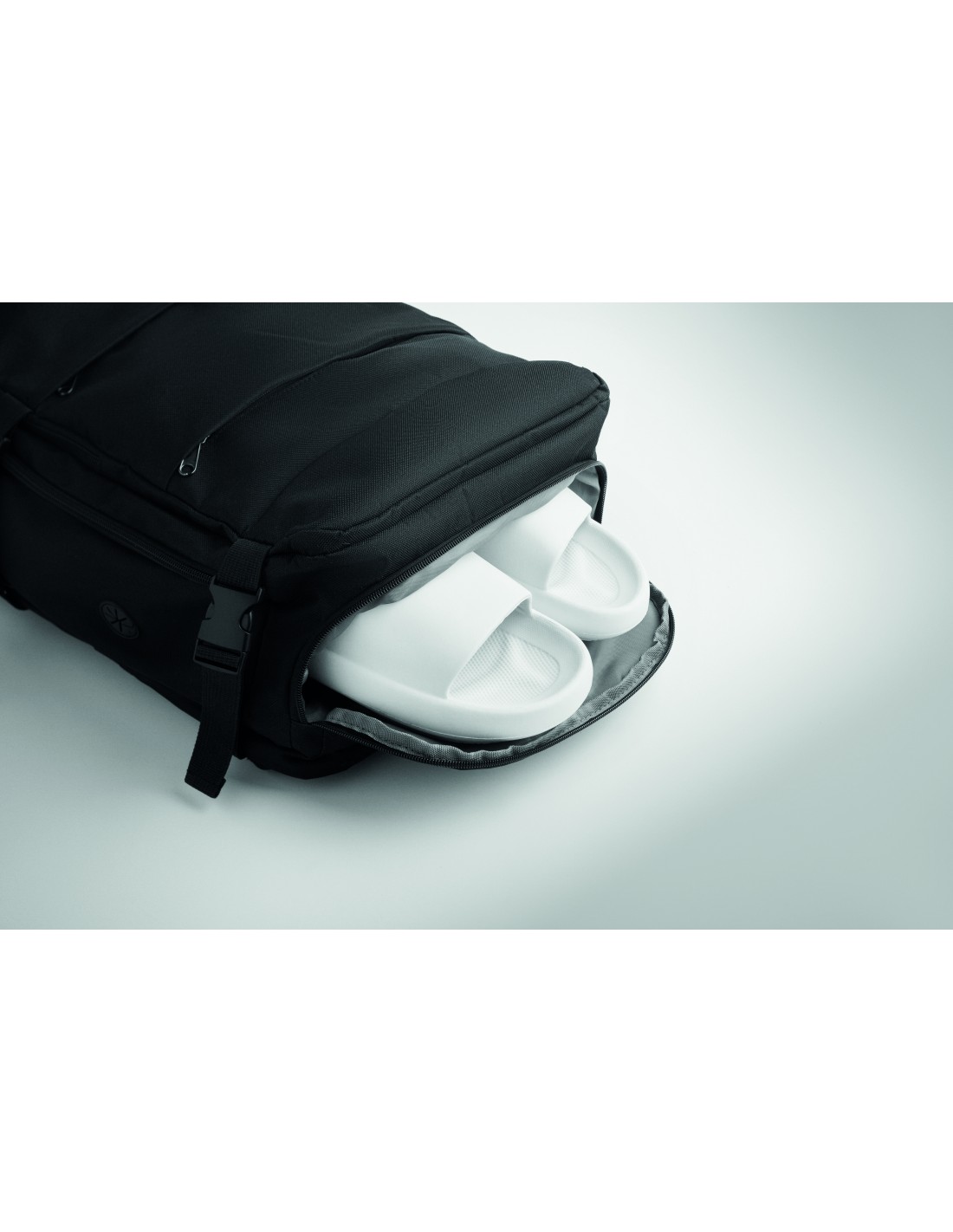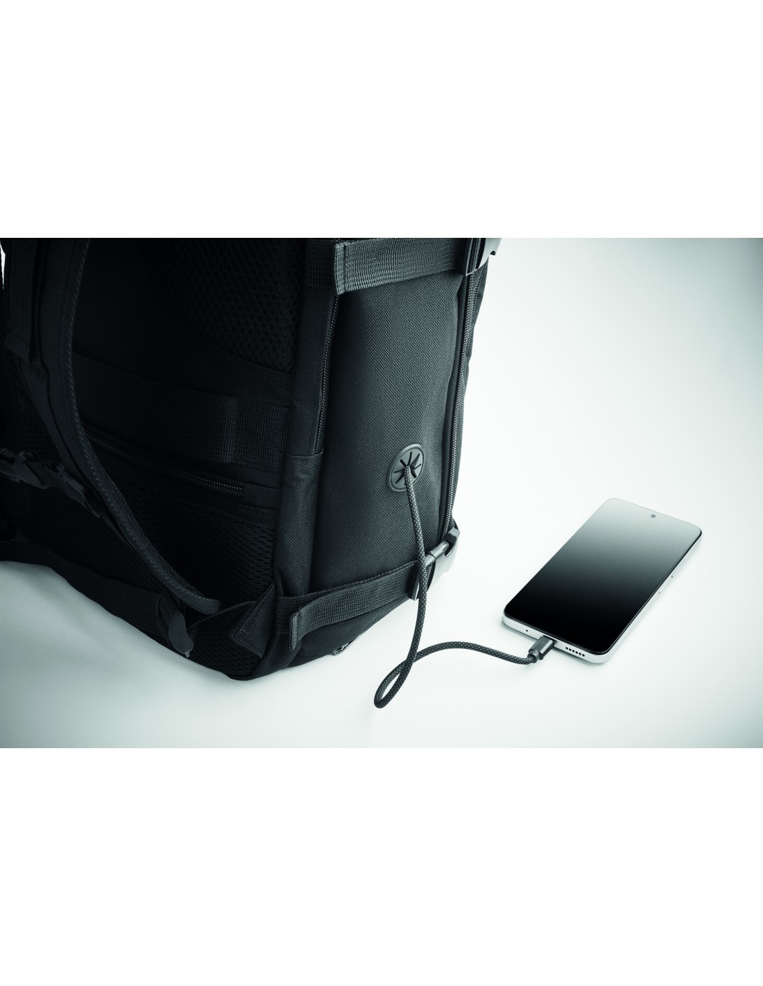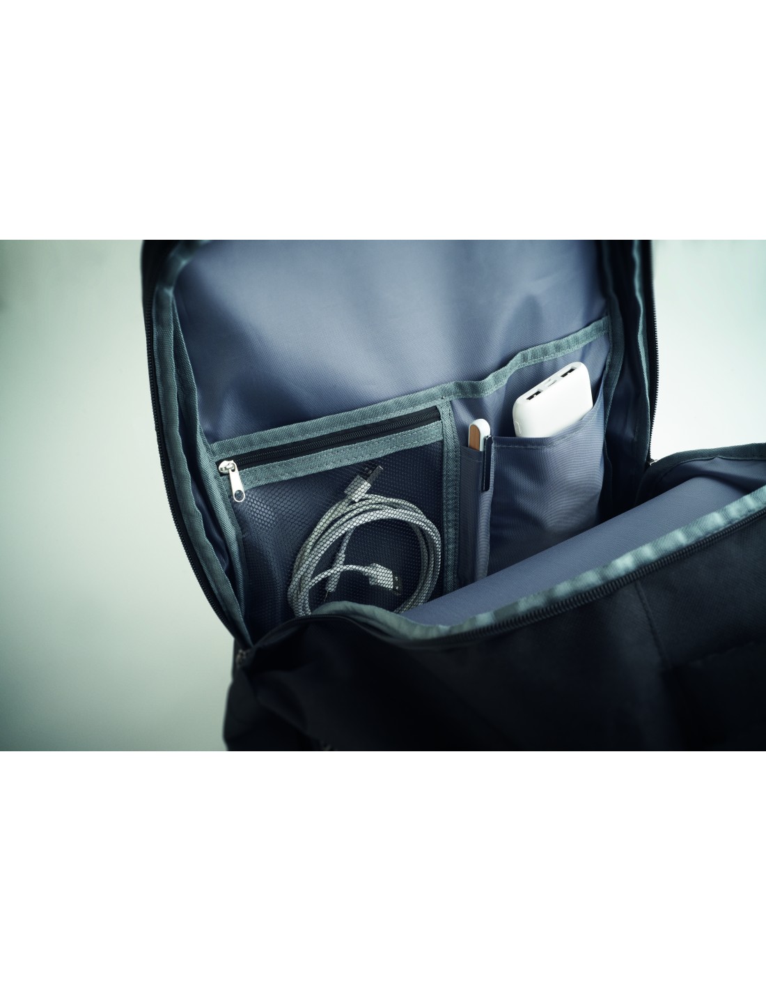 Zaino con tasca anteriore, cerniera impermeabile e scomparti imbottiti per un computer portatile o un tablet. Grazie alla struttura indeformabile e all'imbottititura inferiore, lo zaino protegge perfettamente gli oggetti riposti al suo interno. Consegnato in una custodia in tessuto non tessuto.