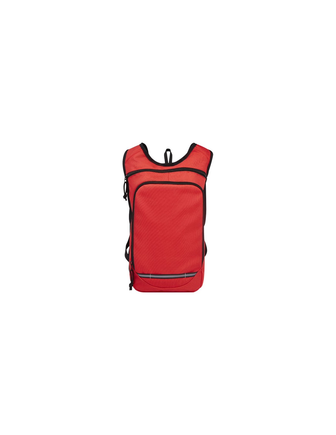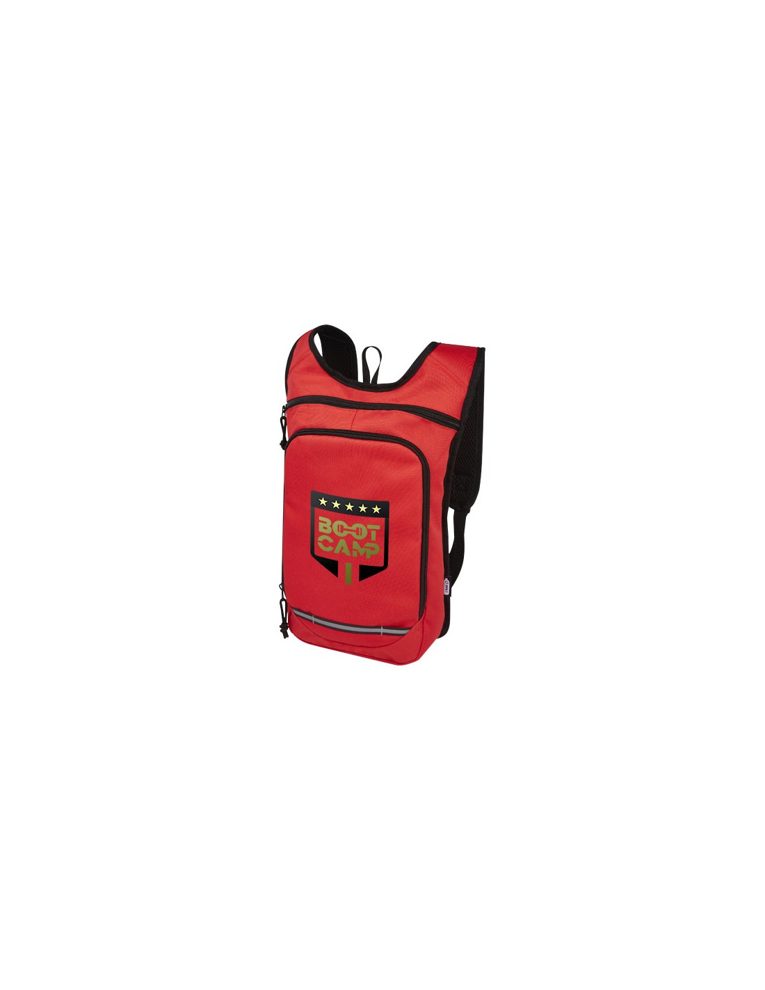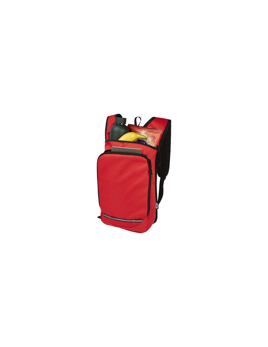 Realizzato in materiale riciclato certificato e tessuto idrorepellente al 100%, lo zaino Trails presenta una tasca anteriore con zip e uno scomparto principale con zip ed è compatibile con una sacca idrica. Grazie alle strisce catarifrangenti per una maggiore visibilità e al retro in rete per il massimo comfort, è un'ottima scelta sostenibile per le attività all'aperto.