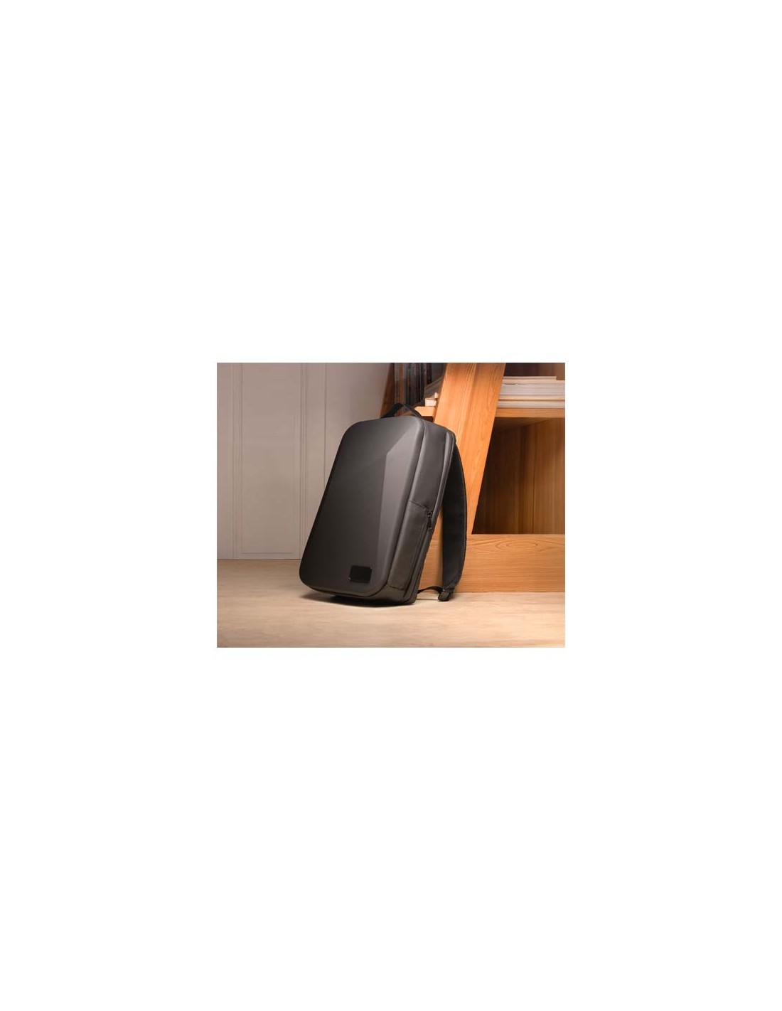 Zaino in PET riciclato dotato di un power bank integrato da 10.000 mAh a ricarica rapida e di un cavo di ricarica 3 in 1 (Tipo-C, iPhone, Micro USB) con logo luminoso. Il power bank è collegato a 2 connettori esterni, un connettore USB-A per caricare i dispositivi e un connettore Tipo-C per caricare il power bank. Lo zaino include un sistema di chiusura a cerniera per garantire un utilizzo sicuro ed è progettato con una schermatura anteriore. All'interno dello zaino sono presenti due scomparti imbottiti per portatile da 15,6" e tablet. Dispone inoltre di una cinghia per maniglia telescopica e di una tasca posteriore nascosta con sistema di protezione "Smart Security". La batteria è rimovibile per i controlli di sicurezza. Per realizzare questo zaino sono state utilizzate 27 bottiglie riciclate. Fornito in una custodia in tessuto non tessuto.