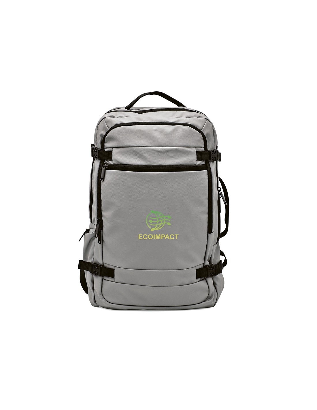 Il Galindo è uno zaino d'ispirazione business realizzato in rPET, che unisce stile e funzionalità. Dispone di una capienza generosa da 22L con uno scomparto imbottito per laptop fino a 17", vari scomparti per lo stoccaggio e una maniglia laterale per il bagaglio per un facile trasporto. Una tasca nascosta per la sicurezza e spallacci imbottiti e regolabili con supporto per il petto rendono questo zaino la scelta ideale per il professionista moderno in movimento. Confezionato singolarmente in un sacchetto in PE riciclato.