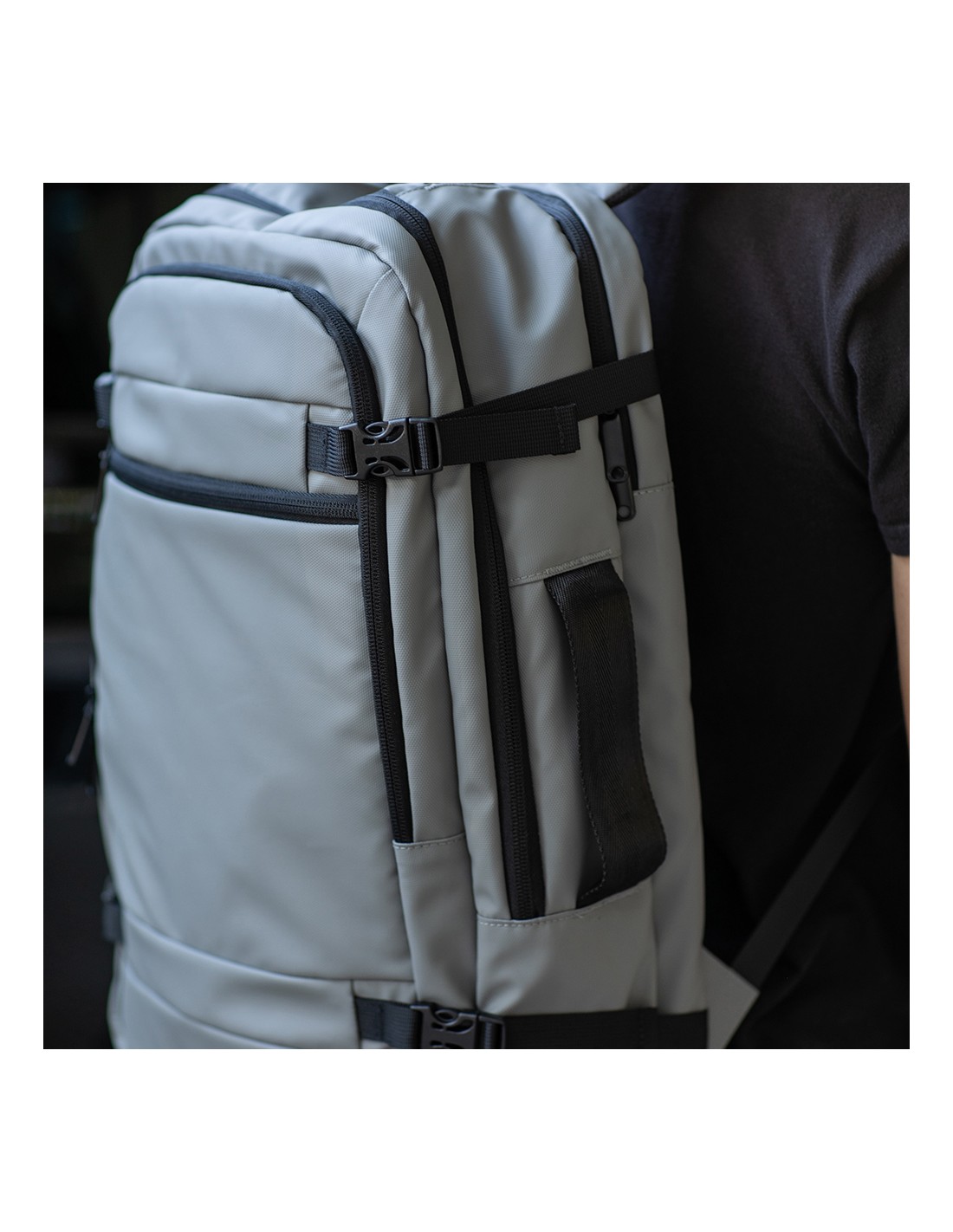 Zaino elegante per le persone che necessitano di trasportare in modo efficiente strumenti elettronici e gli oggetti essenziali. Lo scomparto principale è adatto per un laptop da 15.6" e dispone anche di una tasca per contenere un tablet. Realizzato in poliestere riciclato al 100% e al tessuto...