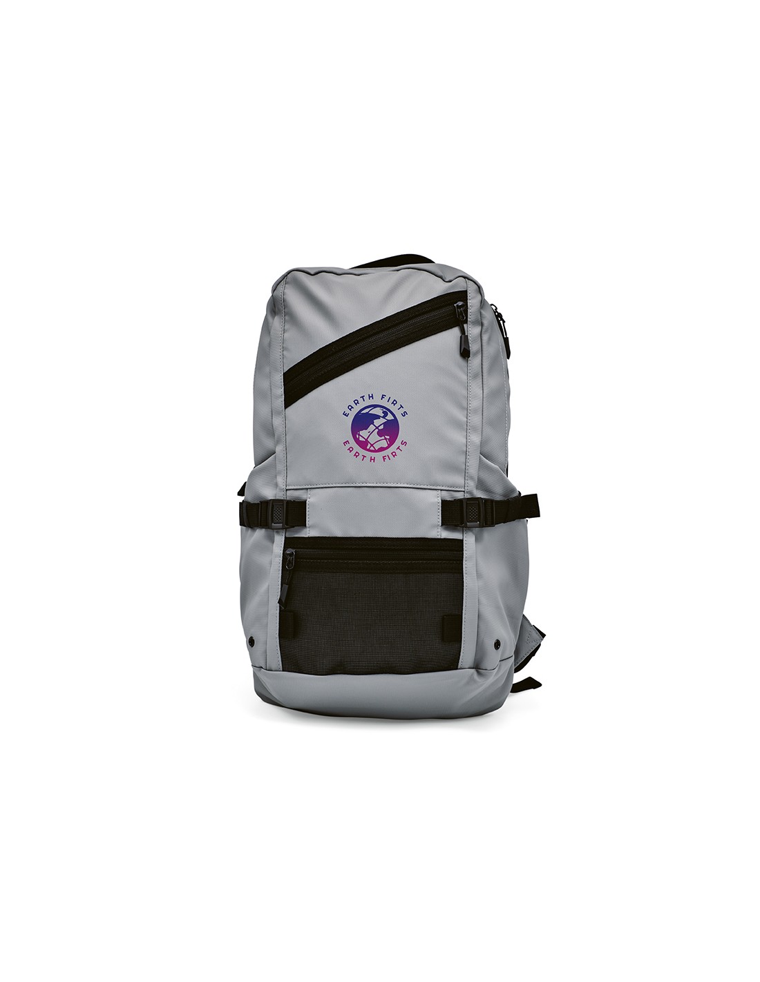 Zaino resistente, realizzato al 100% in plastica riciclata post-consumo, contribuendo così alla riduzione dei rifiuti in plastica. Dispone di spallacci regolabili, 2 scomparti con cerniera e una tasca frontale con cerniera. Per realizzare questo zaino vengono riciclate circa 15 bottiglie.