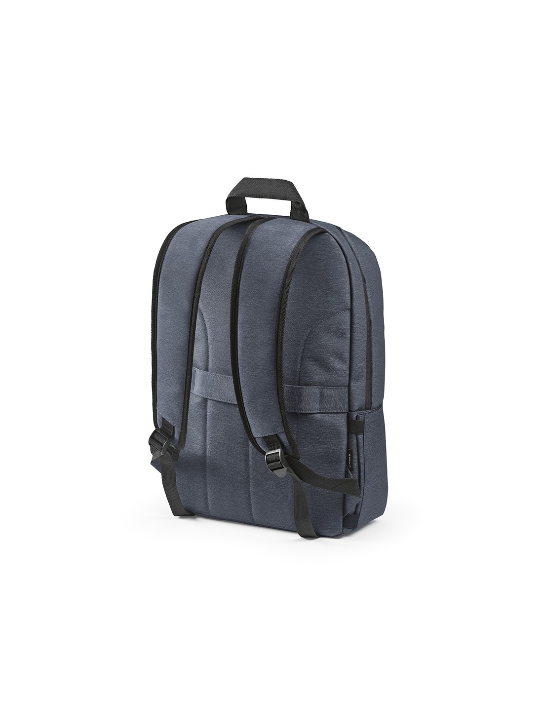 Zaino in poliestere 190T brillante. Tasca esterna, schienale imbottito, fodera interna. Scomparto interno per laptop. Tracolla regolabile imbottita, cinghia sul petto e in vita. Idrorepellente.