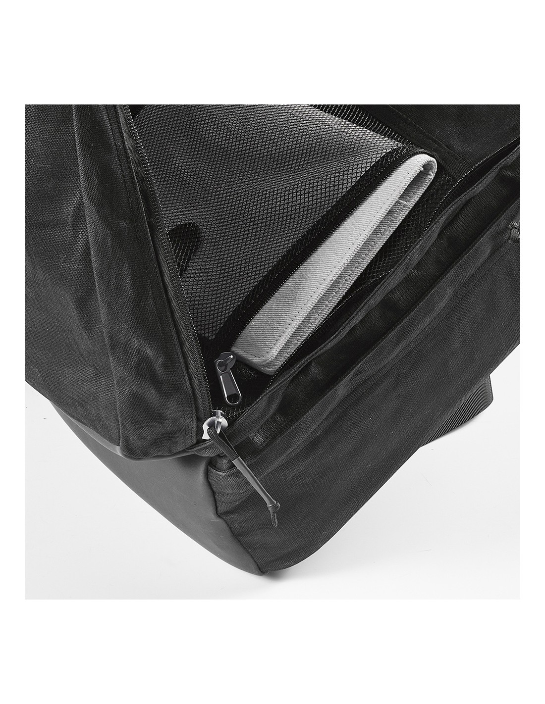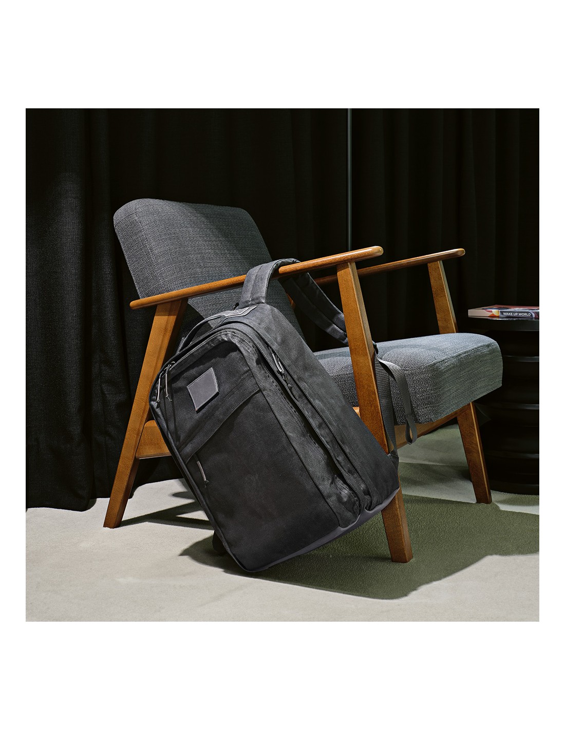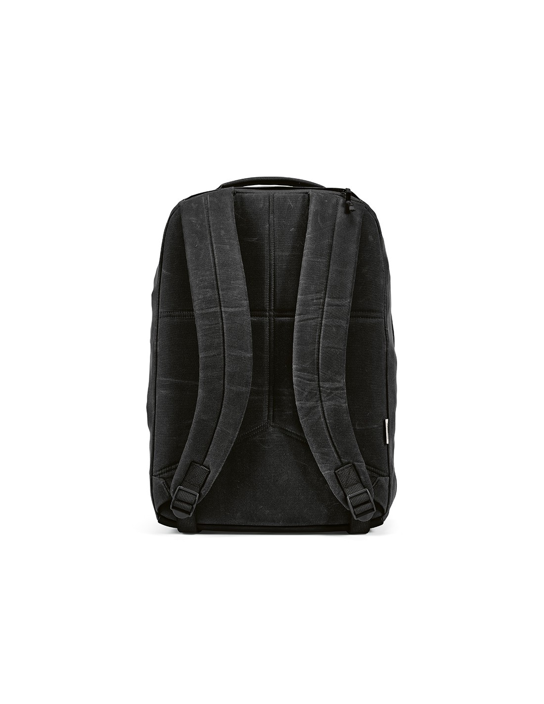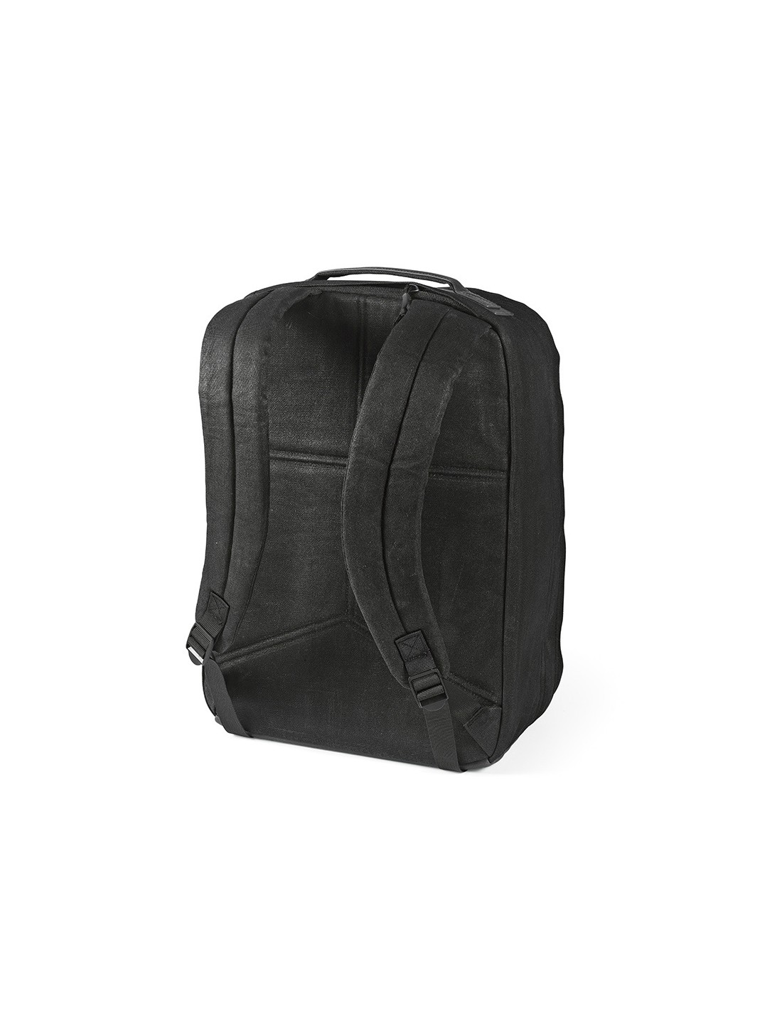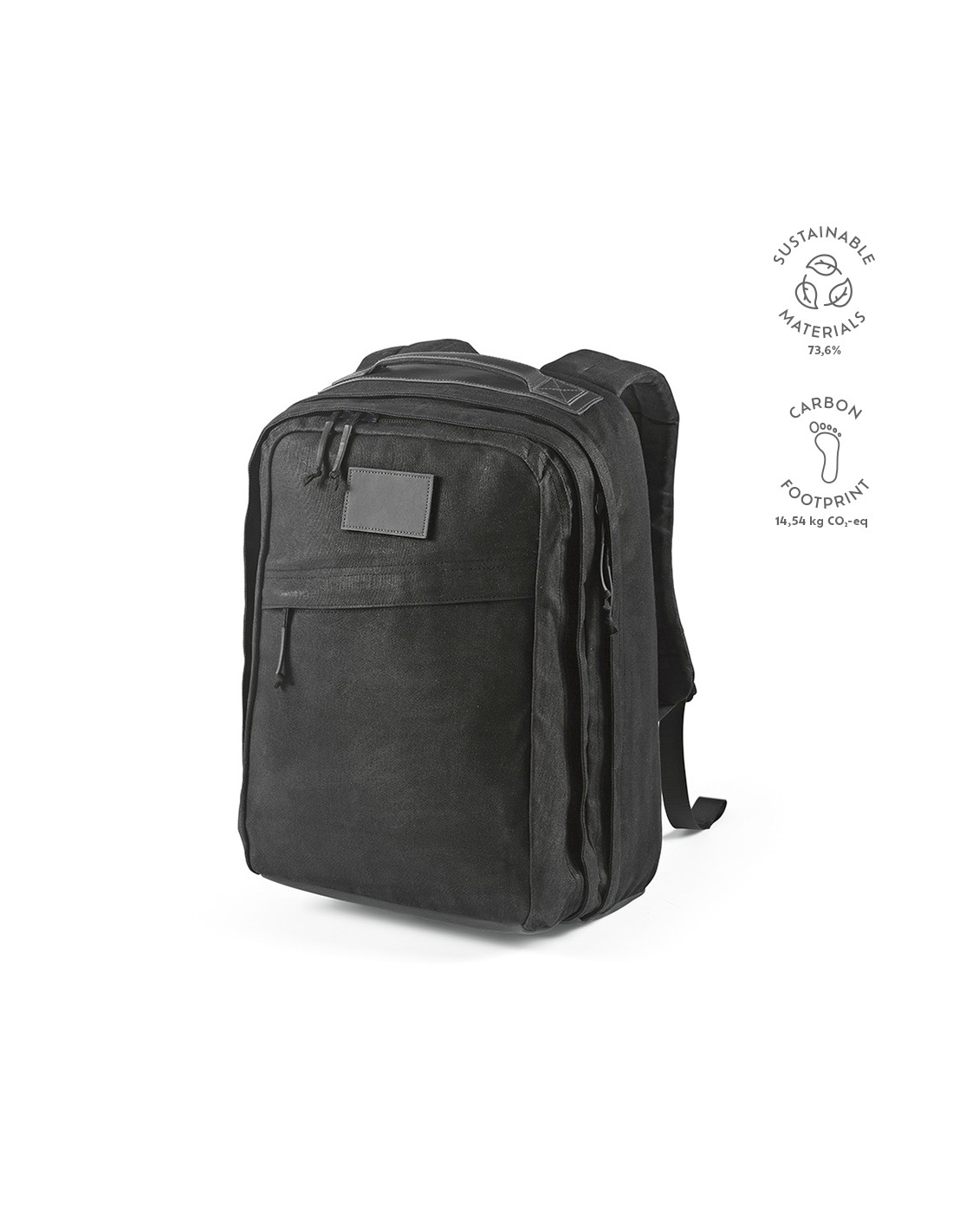 Lo zaino Cape Town da 27L è realizzato in cotone riciclato 230gsm con rivestimento cerato. Include 2 scomparti principali, 1 tasca frontale nascosta e una piccola tasca con zip dietro il manico superiore, ideale per contenere un laptop fino a 17". Consegnato in una sacca singola in cotone riciclato e in una confezione singola in cartone kraft.