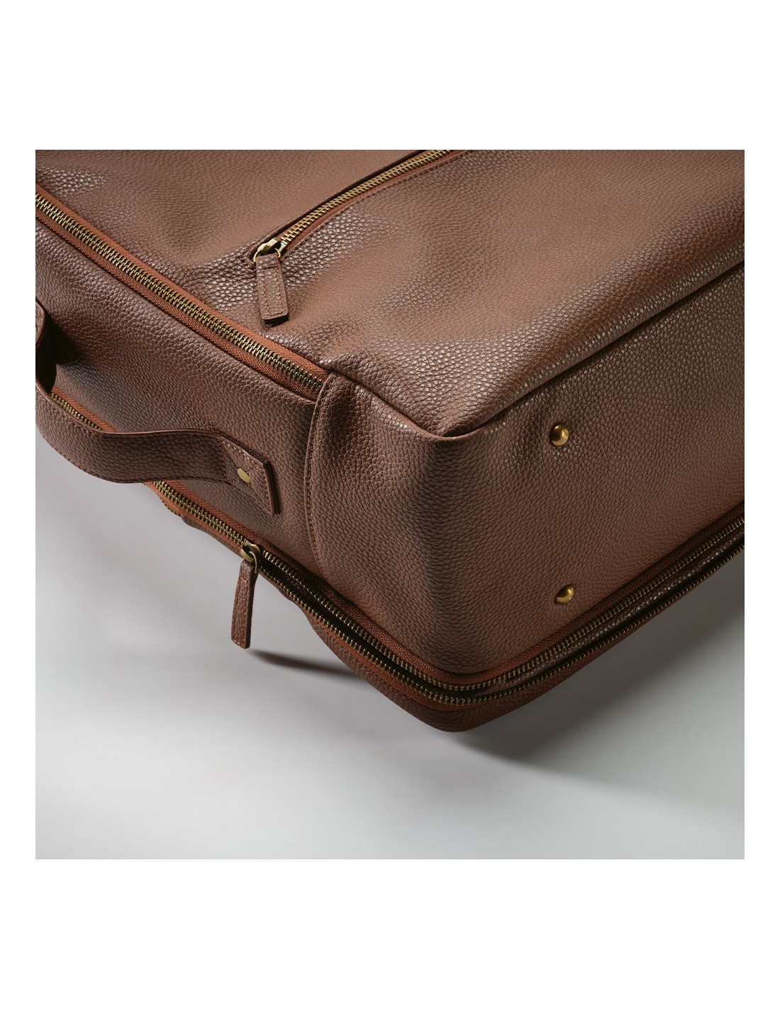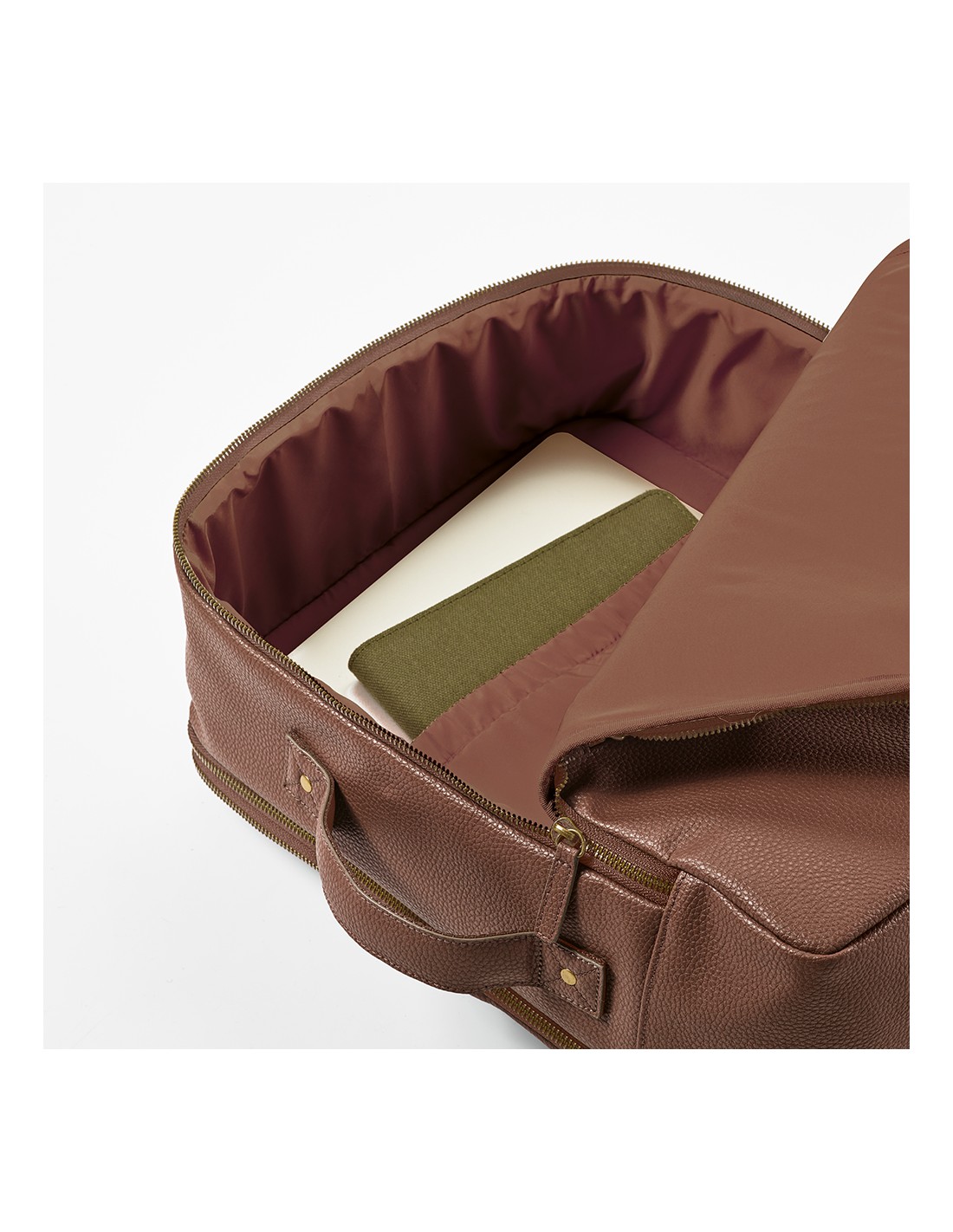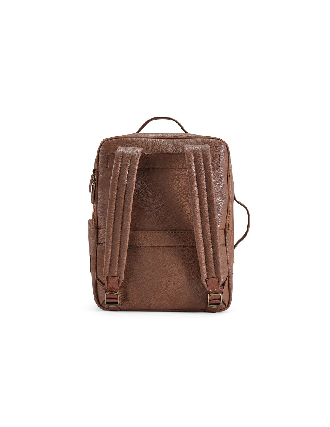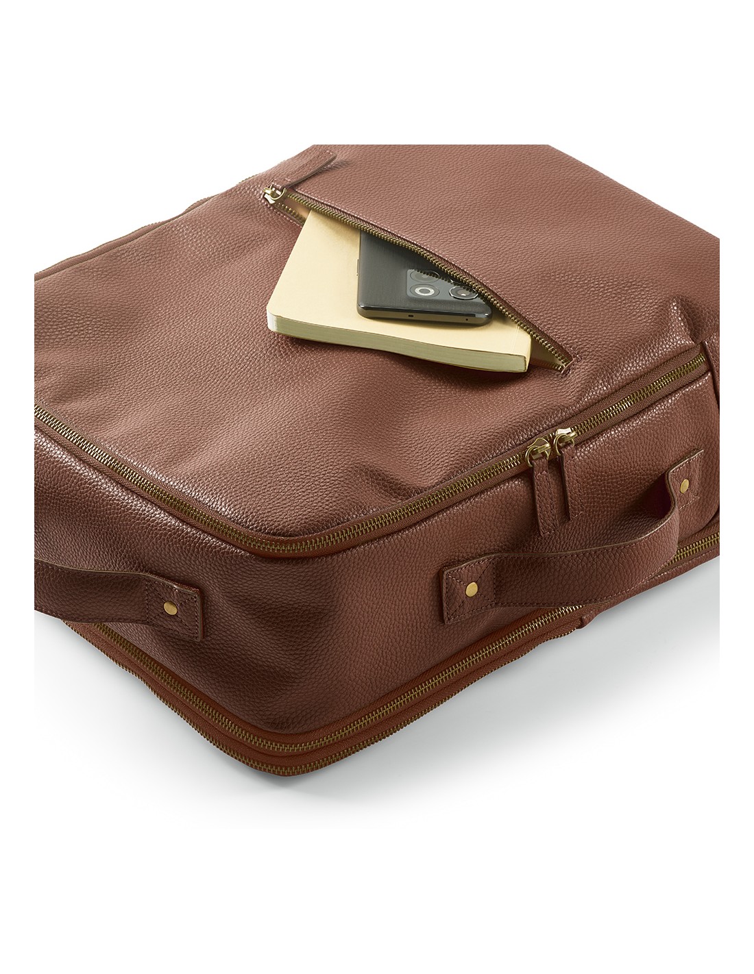 Zaino con parti colorate in 600D poliestere, cordino sulla parte frontale e tasche a rete sui lati.