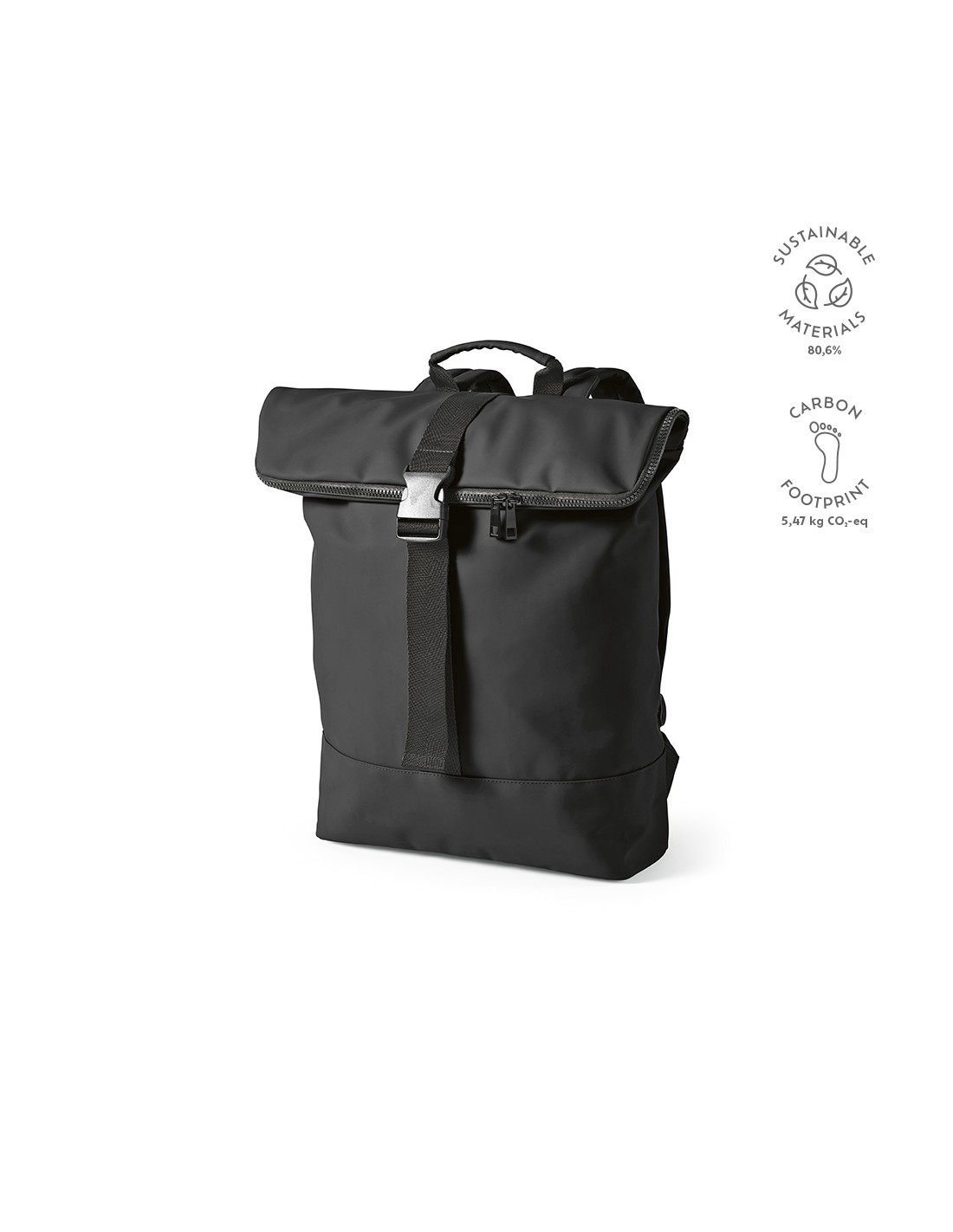 Lo zaino Milan è progettato per il massimo comfort. Questo zaino roll-top da 24L con chiusura a zip e fibbia unisce PU riciclato e funzionalità. Dispone di una tasca principale con uno scomparto imbottito per laptop fino a 17"" e l'imbottitura sulla schiena lo rende l'accessorio ideale per ogni giorno. Viene fornito con una sacca in cotone riciclato.